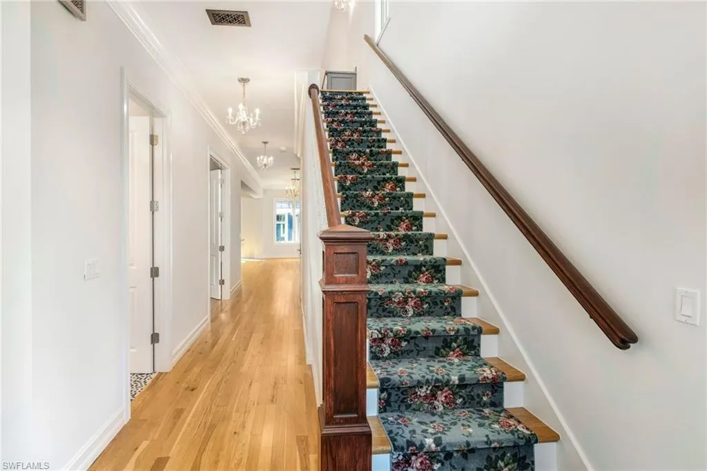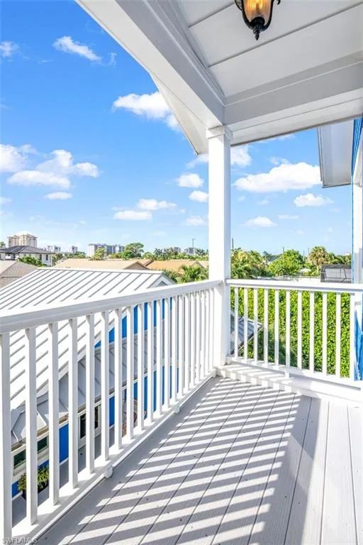Located in Naples, Florida, just moments from the beach, this residence offers a rare fusion of Coastal Contemporary with Craftsman Influences, strength, and sophistication. Perfectly positioned near lush parks, boutique shopping, fine dining, and upscale entertainment, it promises a lifestyle at the very heart of it all. Built by a respected local builder recognized for meticulous craftsmanship, this one-of-a-kind residence is engineered to last. Constructed of solid concrete block and fully waterproofed from foundation to roof, this residence provides unmatched strength, security, and peace of mind, while its exterior—finished with durable concrete Hardie Board siding, impact-rated windows and doors, and a sleek standing seam aluminum roof—delivers enduring beauty, resilience, and unique coastal style. Sip morning coffee or evening cocktails from the welcoming front porch, or retreat to the private balcony where views of the Ritz-Carlton and the shimmering beachside skyline create a breathtaking backdrop.