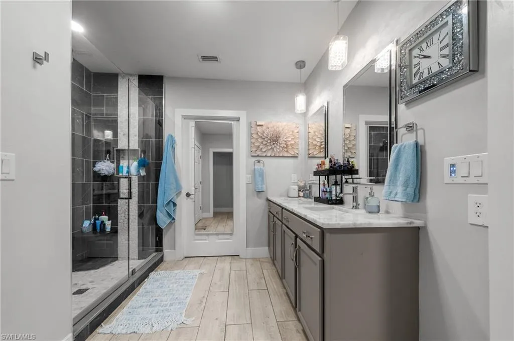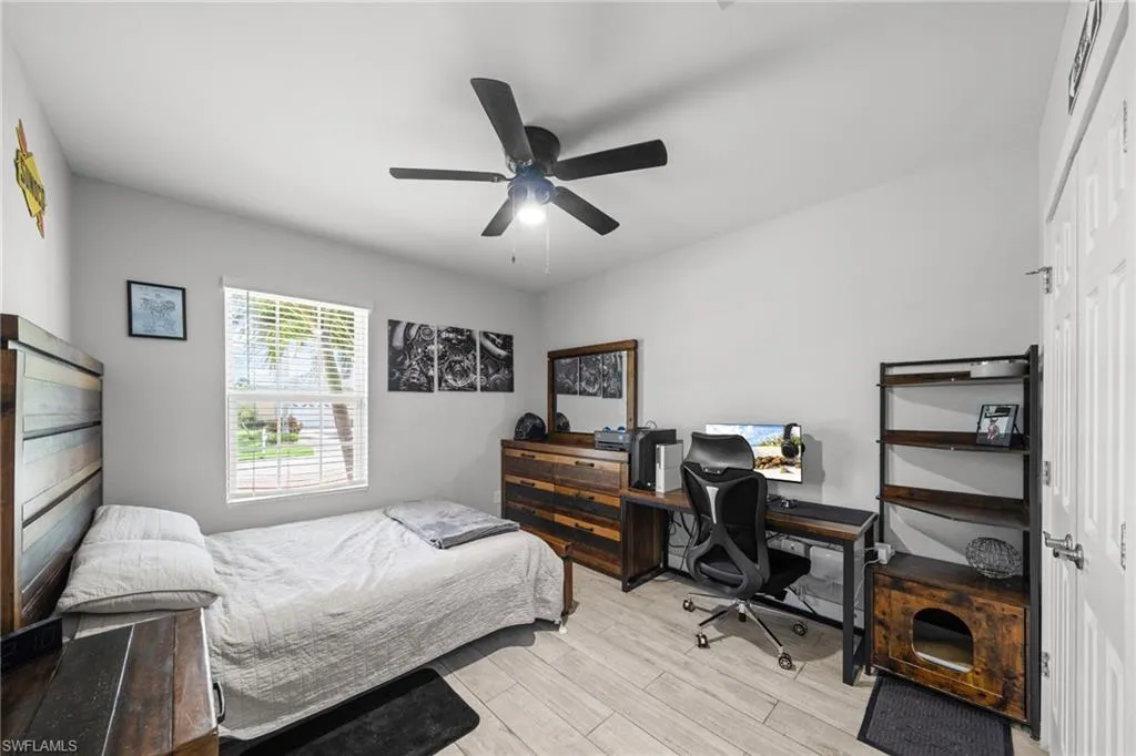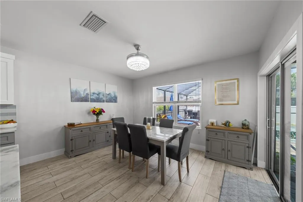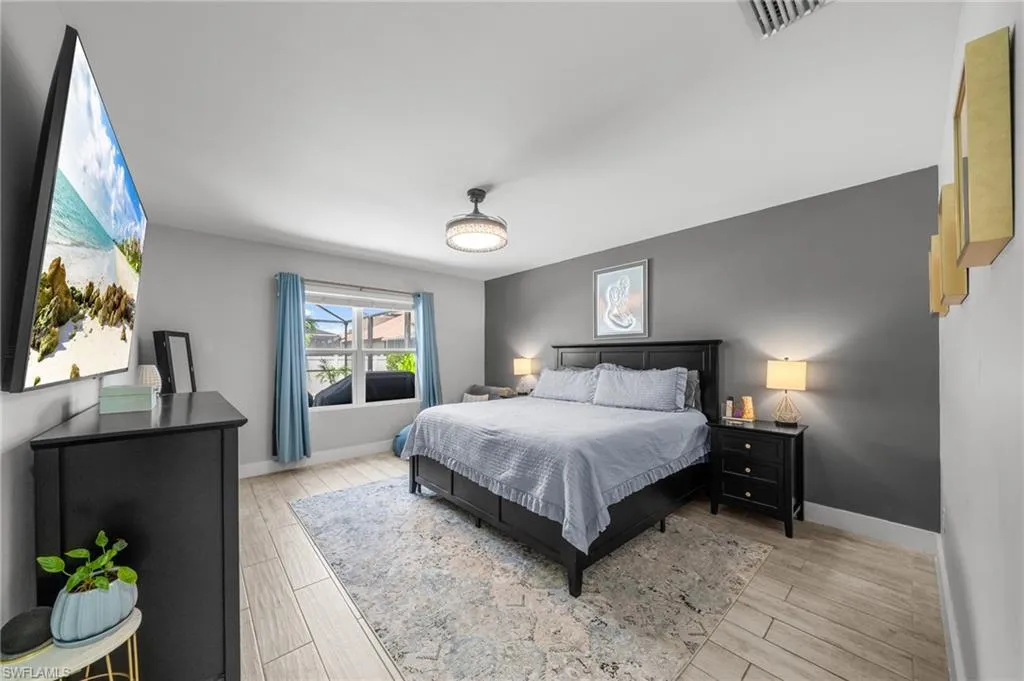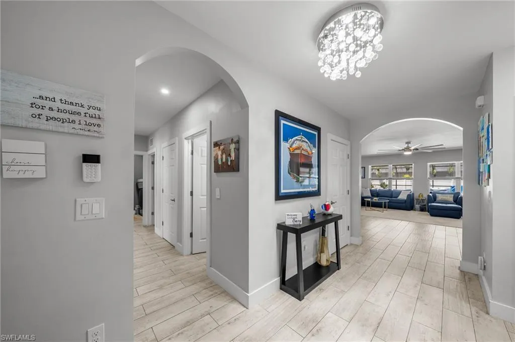 Welcome to this stunning 4 bedroom, 2 bathroom + den single-family pool home offering 2,319 sq. ft. of thoughtfully designed living space. Located in highly desirable SW Cape Coral, this home has never flooded and comes with an assumable flood policy for added peace of mind. Step inside to find new porcelain tile throughout, a modern updated kitchen, and renovated bathrooms that blend style and function. The spacious primary suite features custom California Closets for maximum organization. Enjoy Florida living at its finest with your own private pool and spa, perfect for relaxing or entertaining. The backyard is fully fenced, includes a separate dog run, and offers plenty of privacy. This home also boasts major recent upgrades including a new roof, new fence, and new A/C, new pool pump and appliances ensuring worry-free living. Additional features include a circular driveway with extra space, security system, whole house carbon water filter, city water and sewer with all assessments paid, and a bright, open layout. Don’t miss the opportunity to own a meticulously cared for-move-in ready home in one of Cape Coral’s most sought-after neighborhoods!