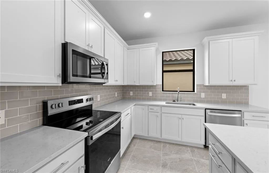 Welcome to this beautifully appointed Highgate floorplan, offering 4 spacious bedrooms and 2 bathrooms in a thoughtfully designed, open-concept layout. This home is loaded with upgrades that enhance both style and functionality. At the heart of the home, the kitchen features white cabinetry with chrome pulls, quartz countertops, and a sleek gray subway tile backsplash, combining timeless design with modern convenience. The main living areas are finished with elegant 22×22 tile flooring, while the bedrooms are comfortably carpeted. The owner’s suite boasts a heavy glass shower door, adding a touch of luxury to your daily routine. Additional highlights include 8′ interior doors, 5″ baseboards, and a laundry room with a built-in sink for added practicality. Enjoy outdoor living year-round on the extended covered lanai, and take advantage of the 4′ garage extension, perfect for extra storage or a workspace. This home offers the perfect blend of comfort, style, and smart upgrades—ready to welcome you home. Experience resort-style living with access to a 14,000 sq. ft. clubhouse, a lagoon-style swimming pool, a fitness center with an aerobics room, and a kids’ wing & game room. The community also boasts 2 Har-Tru tennis courts, 4 pickleball courts, 2 bocce courts, and an 18-hole championship golf course designed by Davis Love III. With an on-site activities director and over 15 miles of scenic trails, this vibrant community offers something for everyone. Don’t miss this exceptional opportunity!