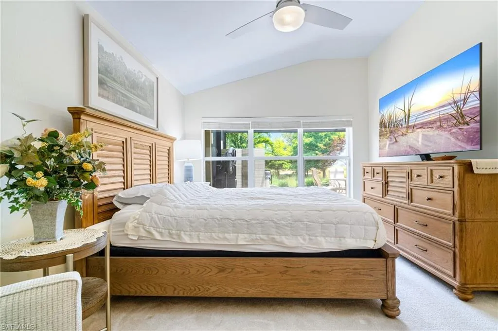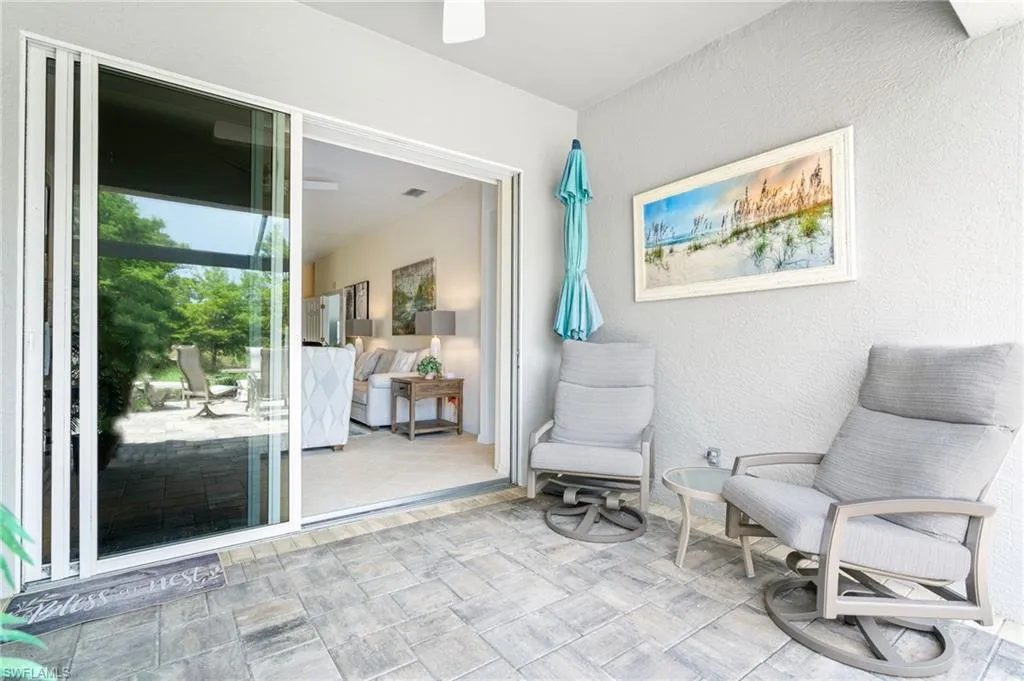Enjoy golf course views from both the front and back of the home. Step outside to an oversized 20X33 screened Paved Lanai with picture window screens with a private jacuzzi and outdoor shower, overlooking the fairways—perfect for entertaining or relaxing. A spacious 2-car garage adds convenience. Colonial Country Club is a premier gated, guard-secured community featuring a Gordon Lewis championship golf course, clubhouse with dining, fitness, tennis, pickleball, bocce, resort-style pool, spa, walking trails, and more. Ideally located near I-75, RSW, shopping, dining, and spring training venues. Resort living at its finest!