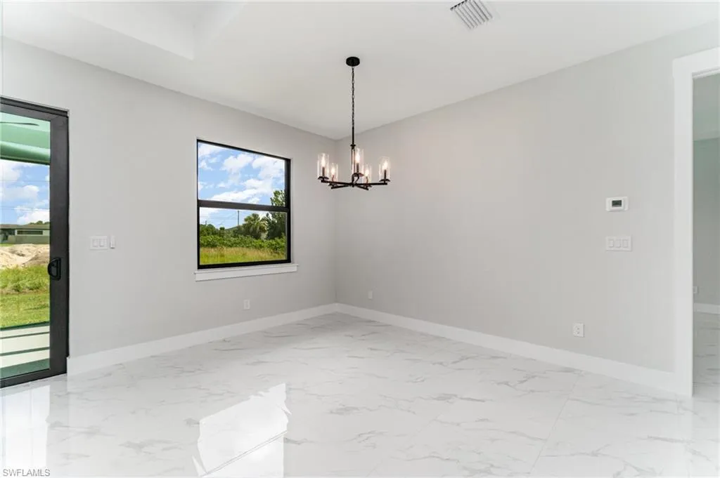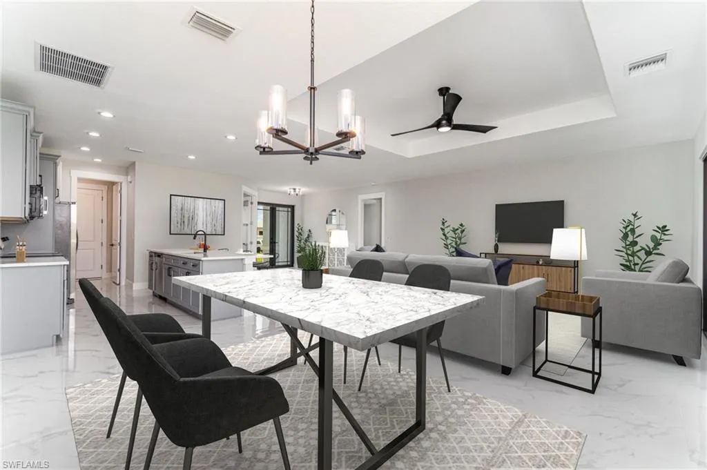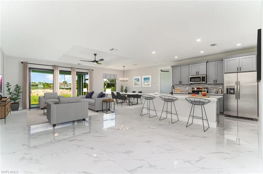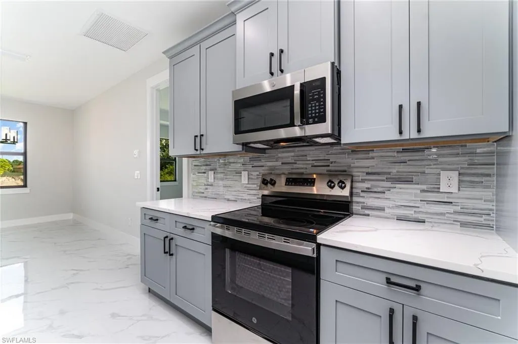 Welcome to your dream home, a brand-new construction in a prime central location in Lehigh Acres that will be completed this Winter. This home offers a perfect mix of luxury, style, and convenience, built with exceptional quality and attention to detail. It’s designed for modern living and peace of mind. This spacious 3-bedroom, 2-bathroom residence features a versatile den that’s perfect for a home office or cozy reading nook. The split floor plan ensures privacy, with the luxurious primary suite tucked away on one side of the home. The primary suite is a true retreat, boasting an elegant tray ceiling and two spacious walk-in closets. In the spa-like primary bathroom, you can relax in a standalone soaking tub or enjoy the sleek, frameless shower. The bathroom also features two separate sinks and vanities, along with a private water closet. The heart of the home is the chef’s kitchen, which features high-end GE brand stainless steel appliances, elegant quartz countertops, and soft-close cabinetry with a beautiful tiled backsplash. This space flows seamlessly into the large great room, making it ideal for entertaining. Throughout the home, you’ll find 8-foot doors, decorative lighting and fans, and stunning large tile flooring. The living room also has a tray ceiling, adding an extra touch of sophistication. Beyond the stunning interior, you’ll find top-of-the-line features for comfort and security. Cat 5 Hurricane impact windows and doors provide superior protection and energy efficiency. The exterior features a beautifully landscaped yard with lawn irrigation, which you can view from the screened-in lanai. The builder even added an integrated pest control system, allowing for easy access and a pest-free home. This fantastic location puts you close to everything you need. You’re just a short drive from RSW International Airport, SR-82, and I-75, making travel a breeze. Enjoy the excitement of Spring Training for the Boston Red Sox and Minnesota Twins, or explore the area’s excellent shopping and dining. When you’re ready for a day in the sun, the beautiful Gulf Coast beaches are not far away. This home is more than just a place to live—it’s a lifestyle. Come see what makes this brand-new home so special. To see a completed home, check out 4106 17th St SW – #2025005727 – This completed home is on a year-end special for $349,999!
