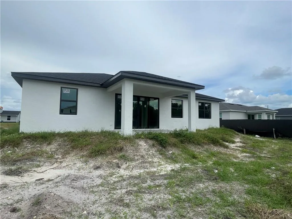 SELLER MOTIVATED. BUYER INCENTIVES BEING OFFERED. Welcome to your dream home, a brand-new construction in a prime central location in Lehigh Acres that will be completed this FALL. This home offers a perfect mix of luxury, style, and convenience, built with exceptional quality and attention to detail. It’s designed for modern living and peace of mind. This spacious 3-bedroom, 2-bathroom residence features a versatile den that’s perfect for a home office or cozy reading nook. The split floor plan ensures privacy, with the luxurious primary suite tucked away on one side of the home. The primary suite is a true retreat, boasting an elegant tray ceiling and two spacious walk-in closets. In the spa-like primary bathroom, you can relax in a standalone soaking tub or enjoy the sleek, frameless shower. The bathroom also features two separate sinks and vanities, along with a private water closet. The heart of the home is the chef’s kitchen, which features high-end GE brand stainless steel appliances, elegant quartz countertops, and soft-close cabinetry with a beautiful tiled backsplash. This space flows seamlessly into the large great room, making it ideal for entertaining. Throughout the home, you’ll find 8-foot doors, decorative lighting and fans, and stunning large tile flooring. The living room also has a tray ceiling, adding an extra touch of sophistication. Beyond the stunning interior, you’ll find top-of-the-line features for comfort and security. Hurricane impact windows and doors provide superior protection and energy efficiency. The exterior features a beautifully landscaped yard with lawn irrigation, which you can view from the screened-in lanai. The builder even added an integrated pest control system, allowing for easy access and a pest-free home. This fantastic location puts you close to everything you need. You’re just a short drive from RSW International Airport, SR-82, and I-75, making travel a breeze. Enjoy the excitement of Spring Training for the Boston Red Sox and Minnesota Twins, or explore the area’s excellent shopping and dining. When you’re ready for a day in the sun, the beautiful Gulf Coast beaches are not far away. This home is more than just a place to live—it’s a lifestyle. Come see what makes this brand-new home so special. Check out 3715 4th St SW – #2025007300 – to see a partially professionally staged model.