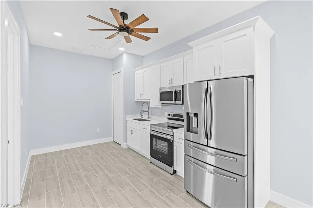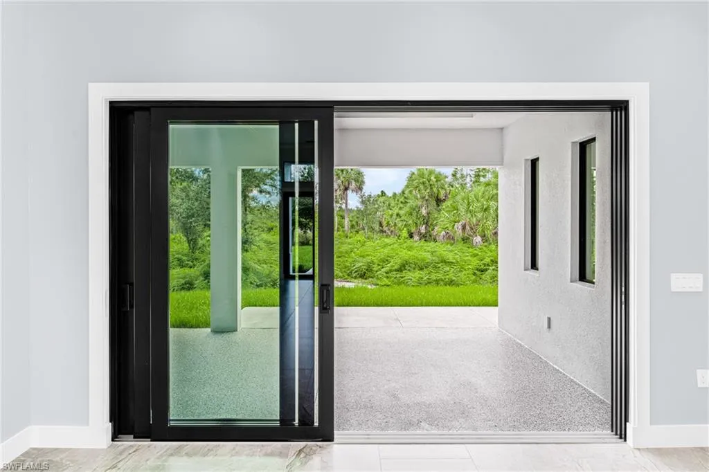 Nestled on 2.27 acres in the highly desirable Golden Gate Estates neighborhood, this exquisite property offers unparalleled privacy thanks to a wide 12-foot by 370-foot-long driveway. The exterior features decorative lighting, full gutters with underground drainage, and lush natural landscaping.