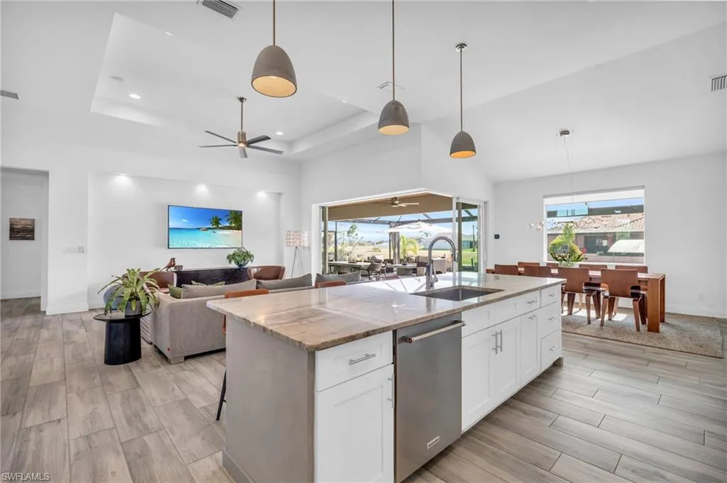 Your SW FL dream home awaits—where every day feels like a vacation, & the best catch of your life is just a cast away! As the sun rises over the calm, glistening water, you step onto your custom Hickcox WearDeck dock, coffee in hand, & cast your line. Within moments, a powerful Snook strikes, putting up an unforgettable fight. As the evening sets in, the dock’s green fish lights attract Tarpon, creating a magical glow beneath the water perfect for night fishing. This is more than a home; it’s an angler’s paradise, offering the ultimate waterfront lifestyle right in your backyard. This one-of-a-kind 3-bed, 2-bath, oversized 3-car garage Gulf-access masterpiece delivers luxurious yet casual SW FL living at its finest. The Southern Exposure outdoor space is truly exceptional & will undoubtedly become your favorite place to relax & entertain. With the 8000-lb boat lift, Sunbrella cover, dock roping, & solar lighting, your boat is always ready for a day on the water, whether you’re heading out to Matlacha Pass, Pine Island Sound, North Captiva, Cayo Costa Islands, or Charlotte Harbor for world-class fishing & boating. The expansive lanai is equally impressive. The picture frame pool cage & superscreen provide unobstructed views, while solar string lighting & custom Sunbrella curtains add ambiance. Enjoy your custom Pentair saltwater heated pool, complete w/sun shelf, bubblers, an infinity-style spa, & outdoor shower—perfect after a great day on the water. Fire up the vented 30-inch Bullet grill in your fully-equipped outdoor kitchen, pour a drink, & watch the sunsets. Inside, the home showcases meticulous craftsmanship & thoughtful design. The seamless flow between indoor & outdoor spaces is highlighted by the 90-degree slider, creating an open floor plan perfect for entertaining. The chef’s kitchen is a dream, featuring an All Fridge/All Freezer combo, premium finishes, & an oversized island that makes meal prep effortless. The primary bedroom retreat offers private patio access & a spa-like en-suite w/ a freestanding tub, large enclosed shower w/a luxurious rain showerhead, & dual walkin closets. Two guest bedrooms, each w/their own walk-in closets, provide ample space for family & visitors, while the conveniently located pool bath ensures seamless outdoor entertaining. Every detail of this home has been carefully considered, from the stunning Italian Harco Loor lighting to the sleek Zeus modern mailbox. Built for comfort & security, it features impact doors & windows, brand-new hurricane garage doors, a 24-gauge standing seam metal roof, & a LCEC GenerLink system for generator power. For those who love the home exactly as it stands, a turnkey option is available. This is a rare opportunity to own a truly unique Gulf Access home. Whether you’re an avid angler, a boating enthusiast, or simply someone who loves enjoying the indoors in a zen-like surrounding, this home delivers the lifestyle you’ve been dreaming of, set up your private showing today!