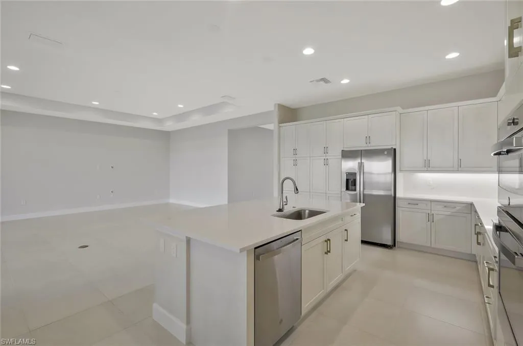 New construction now available for immediate occupancy! This “Nassau” home offers impact resistant windows throughout and has 3 bedrooms, a Den, 3 ½ baths, and 3 car garage. The Open Kitchen features stainless steel GE appliances and beautiful quartz countertops. The master bedroom offers spacious his and her closets and a master bathroom with dual sinks. Other features include 24 x 24 tile in main areas, glass entry front door, extended garage and covered patio and more! Valencia Harbor is located close to all that Ft. Myers offers and provides a new standard of 55 plus living by offering an exciting vacation-inspired lifestyle that rivals the finest resorts. The opulent 33,000 sq. ft. Clubhouse and Lifestyle Complex offers hundreds of exciting events including Broadway style shows, matinees, cocktail parties and galas. A full-time, on-site lifestyle staff ensures that there is something for everyone to enjoy.