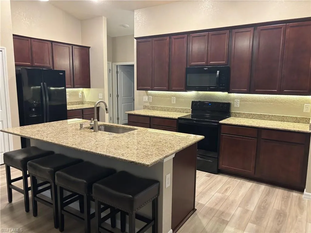 Here is your chance to own an upgraded 4-bedroom home in the SW-Cape at an affordable price. Built in 2021, this Holiday Builders Delray Elevation A was totally upgraded by the builder for the seller when constructed. This home features Luxury PVC vinyl flooring throughout the entire home for easy cleaning and maintenance. Granite counter tops in the kitchen and baths, upgraded cabinets throughout the home and 42-inch upper cabinets in the kitchen. LED lighting package in the entire house and black appliances and the 4th bedroom / den option was added along with the rear covered lanai. As you enter the home you notice the wood look plank flooring throughout. There is a formal dining area or could be used as a den when you enter with the 3 guest bedrooms and bath off to the left. Further into the home the great room features cathedral ceilings with LED lighting and shares the kitchen area with a large island / breakfast bar for easy meals and entertaining. Upgraded wood cabinets with 42-inch upper cabinets in the entire kitchen and a large pantry. Part of the great room is designed as an additional dining area if desired. There are large windows and the slider in the great room out to the covered lanai. The entire great room area is designed for family gatherings with the openness to the kitchen, living and dining areas. To the right of the great room is a very large primary bedroom which easily fits king size furniture with room to spare. The main bathroom features dual sinks with granite counter tops, a step-in shower, separate toilet room and an extra-large walk-in closet with room for tons of clothes and storage. Each of the 3 guest bedrooms has a large closet with bifold doors. The second bathroom is centrally located convenient to the 3 bedrooms. As you enter the home from the 2-car garage there is an indoor laundry room located just off the kitchen area and garage entry is conveniently located to the kitchen area for ease of entry and grocery delivery. Conveniently located between Skyline and Chiquita Blvd just south of Gleason Pkwy. Close proximity to Veterans Pkwy, transportation stops, restaurants, shopping and medical centers. Located near Gulf Elementary & Middle Schools, Ida Baker & Oasis Charter Schools. Not in a flood zone.