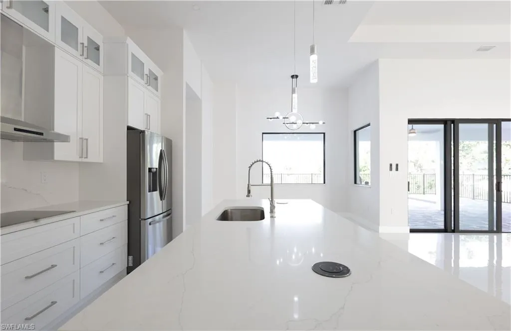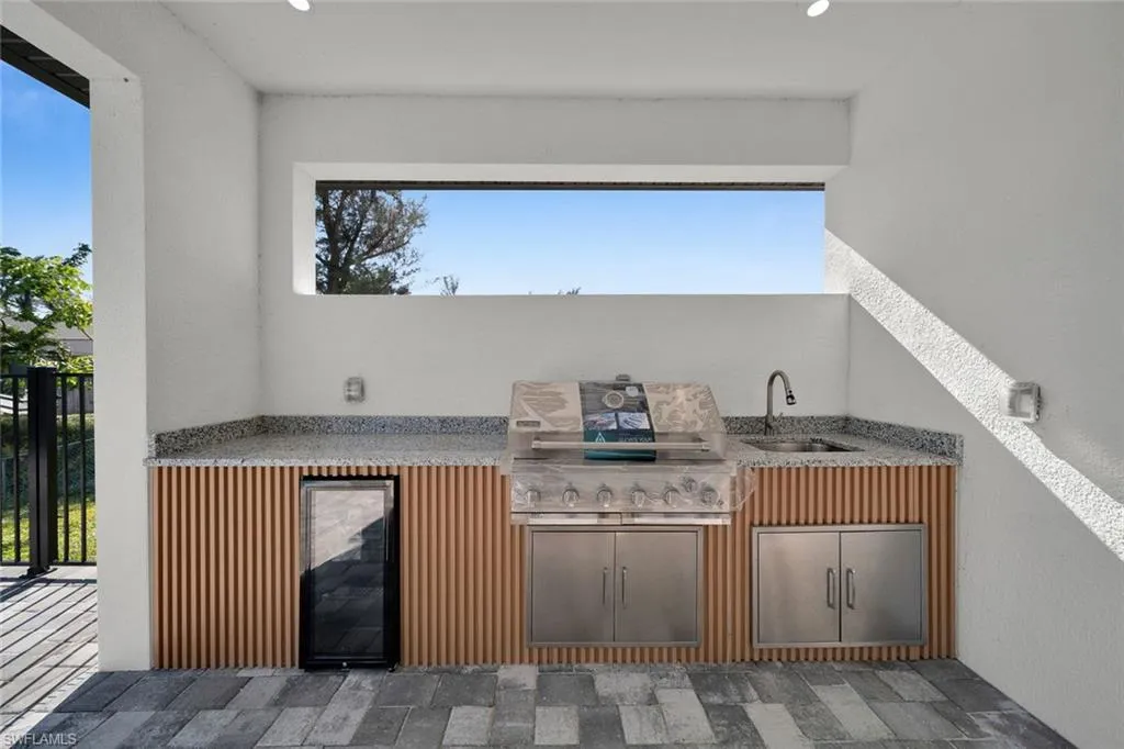 Outdoor living is elevated with a FULL OUTDOOR KITCHEN, BUILT-IN BBQ, and a DEDICATED POOL BATHROOM—ideal for entertaining. The ELEVATED TERRACE provides rare, uninterrupted views of the NAVIGABLE CANAL, perfect for enjoying sunsets. Additional upgrades include a FULL LAUNDRY ROOM WITH CABINETS AND SINK, CITY WATER AND SEWER (NO WELL/SEPTIC!), and a location in a NO FLOOD ZONE. Just minutes from GREAT SCHOOLS, SHOPPING, DINING, and FORT MYERS AIRPORT.