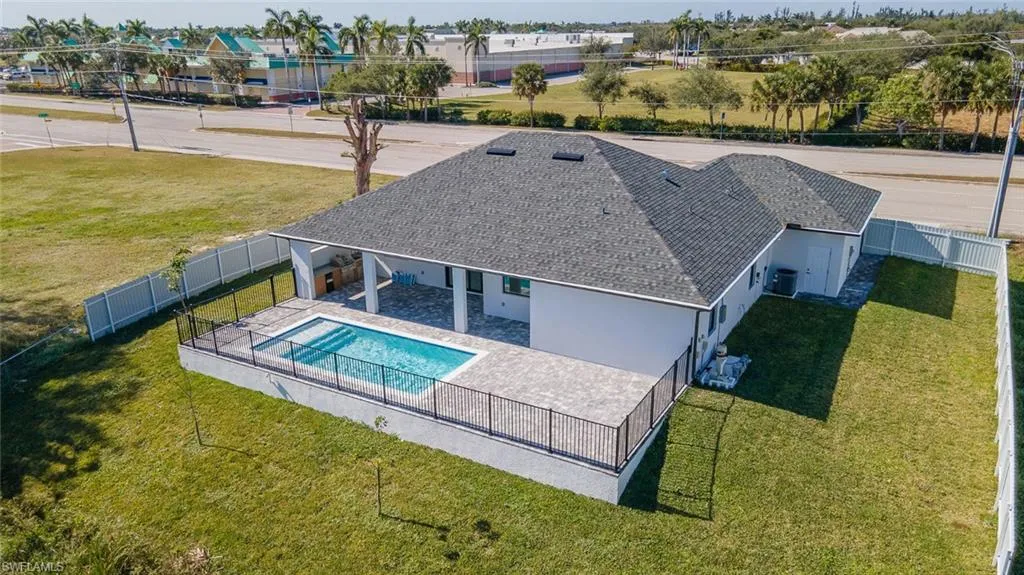 SELLER IS WILLING TO CONTRIBUTE TOWARDS BUYER’S CLOSING COSTS WHEN OFFER IS PRESENTED! Stunning WATERFRONT NEW CONSTRUCTION POOL HOME located in the highly desirable SW CAPE CORAL, sitting on an impressive 0.30-ACRE TRIPLE LOT. This exceptional property features a PRIVATE POOL, ELEVATED TERRACE with PANORAMIC WIDE CANAL VIEWS, and everything you need to live the ultimate Florida lifestyle. Enjoy a FULLY FENCED LOT with AMPLE SPACE FOR AN RV AND BOAT, a CIRCULAR DRIVEWAY WITH PAVERS, and a spacious 3-CAR GARAGE.