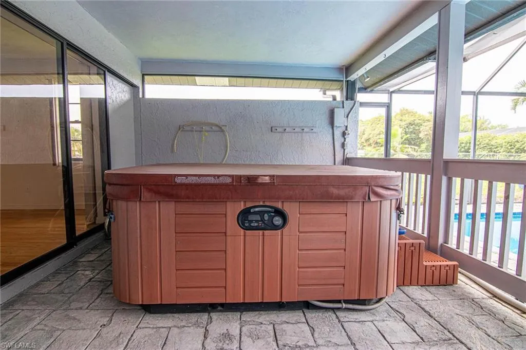 The layout of this home is exceptional, with ample open space, impact windows for the front living room, and pocketing sliders to the lanai and pool area that create a welcoming and bright atmosphere. The spacious living areas in this 2,029 square foot home include a separate living room and a family room to go with the split bedroom floor plan. The beautiful west-facing lanai and swimming pool are enclosed by a large screen enclosure creating an extra outdoor living space that is ideal for entertaining or simply basking in the Florida sunshine. A portable spa/hot tub is situated in a shaded section of the lanai, offering a relaxing retreat day or night. Additionally, this home is conveniently close to shopping, restaurants, banks, schools, medical offices, and Cape Coral Hospital, all of which are located within a short drive.