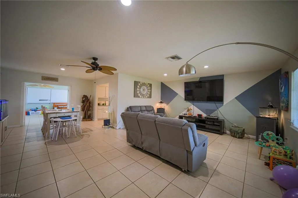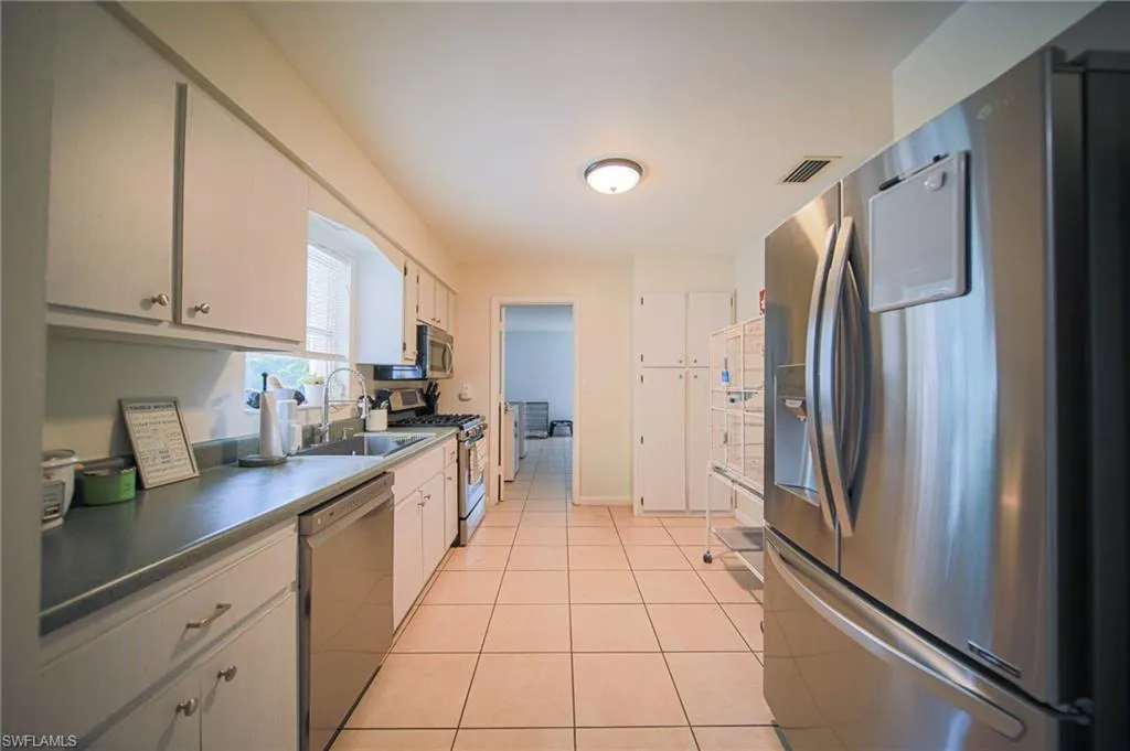 Welcome to this charming 3-bedroom, 2-bathroom home located in a desirable and quiet neighborhood of Lehigh Acres. This residence offers both comfort and practicality with tile flooring throughout, a spacious 2-car garage, and a fully fenced backyard—perfect for privacy, pets, or entertaining. The kitchen is equipped with newer stainless steel appliances and features a gas range powered by an 80-gallon propane tank, along with a gas water heater for added efficiency, also the durable metal roof ensures long-lasting protection. These things combined, add peace of mind during a hurricane, power outage and for years to come. This property also comes with the convenience of city water and sewer, adding to its value and reliability. Conveniently situated near grocery stores, dining, and schools, this home offers easy access to everyday essentials while maintaining the tranquility of its setting. With its combination of modern updates, functional features, and prime location, this home is a must-see for anyone looking to settle into Lehigh Acres.