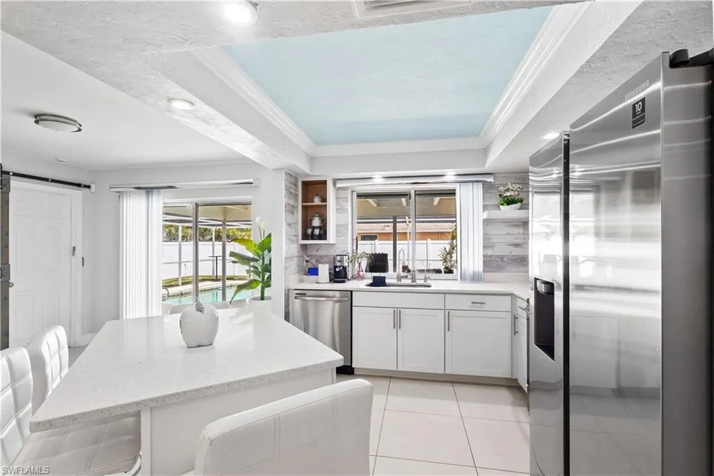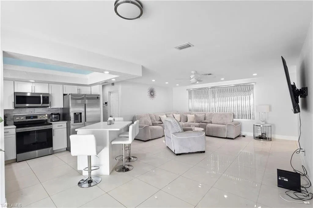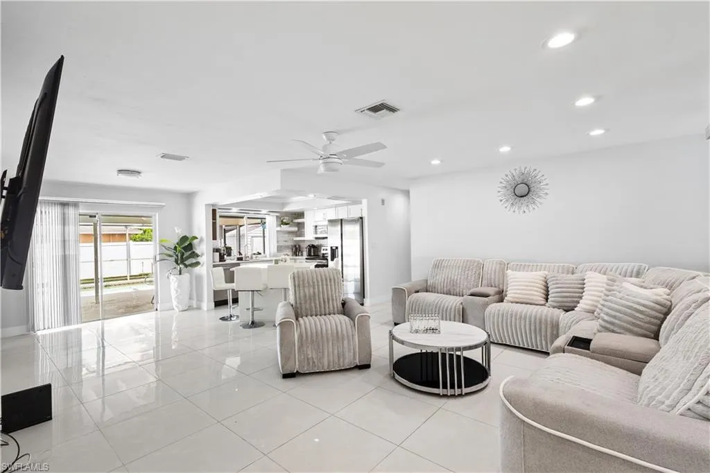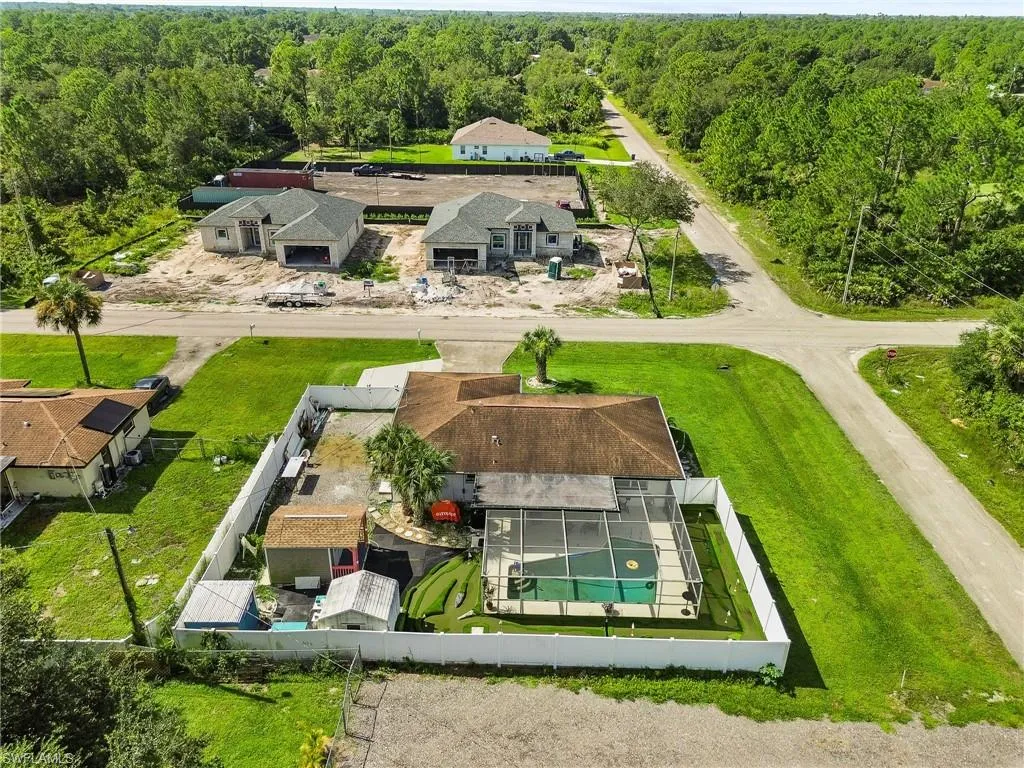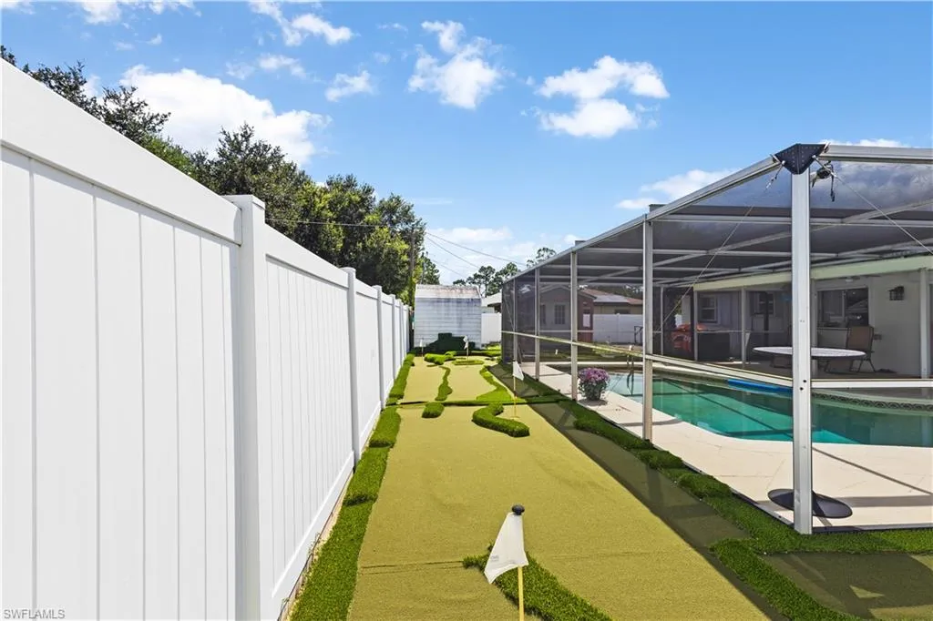 Pool Home , Discover an incredible opportunity to own an affordable, fully remodeled pool home. This property stands out with its unique 9-hole mini-golf course with LED lights, a screen-enclosed concrete pool with a newer heater, and a privacy-fenced backyard featuring a side driveway for secure boat or RV parking. The beautifully upgraded interior boasts 24-inch porcelain tile floors, a remodeled kitchen with quartz countertops, new wood cabinets, and a Samsung stainless steel appliance package. The master suite is a private retreat with modern barn doors, a large walk-in closet, and a newly remodeled en-suite bath. Additional upgrades for peace of mind and low maintenance include Storm Smart hurricane shutters, a newer roof, insulated windows, two sheds with electricity, and a Swann security system. Located just minutes from I-75 and Fort Myers, this home is in excellent, move-in ready condition.