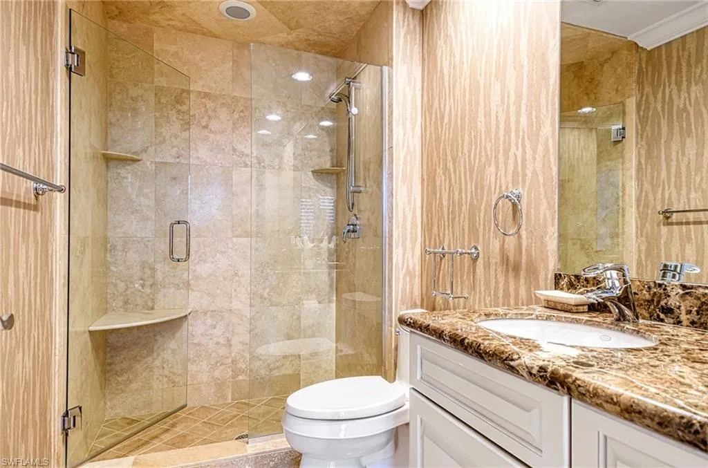 Le Parc’s amenities rival those of a luxury resort: a Gulf-front pool, an enclosed spa room, outdoor grills, a spacious patio, two guest suites with terrace access, and a state-of-the-art fitness center complete with locker rooms, sauna, spa, and tennis court. The community room—with its full kitchen and direct access to the outdoor terrace—is ideal for private entertaining or resident events. And just minutes away, Venetian Village offers exceptional dining and boutique shopping.