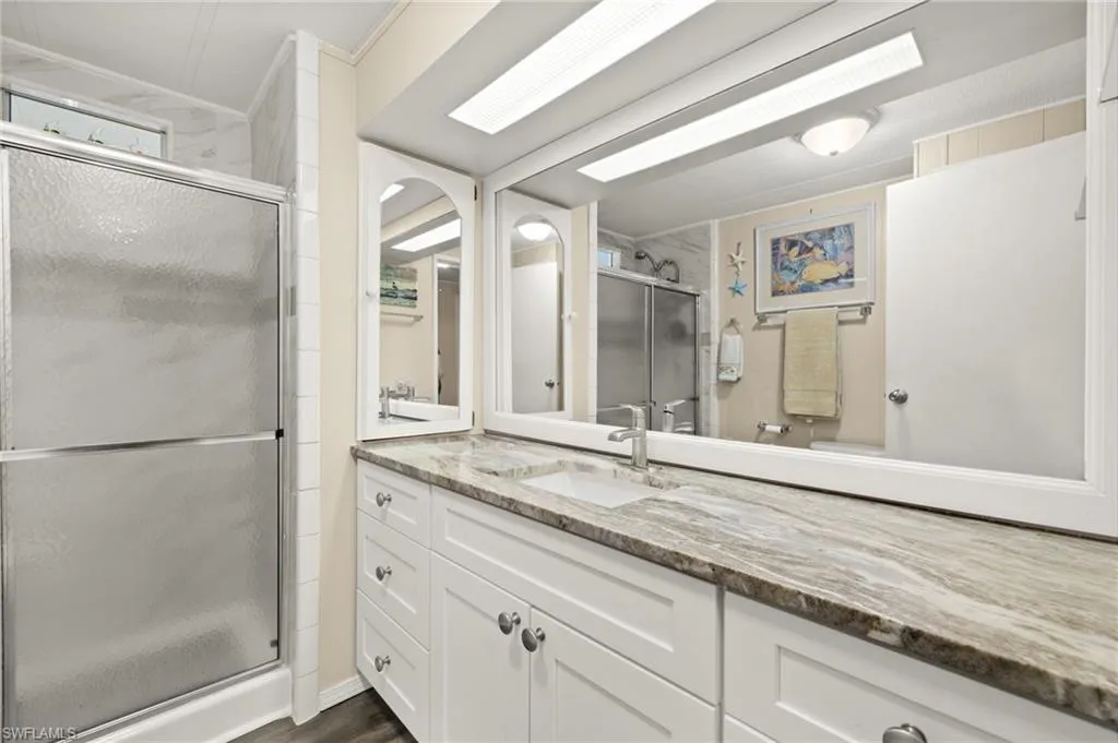 Motivated Seller! This beautifully remodeled home is located in a pet-friendly, 55+ community in North Fort Myers, offering comfort, convenience, and peace of mind. Inside, you’ll find a thoughtfully updated interior where crown molding throughout adds an elegant touch. The kitchen and bathrooms have been remodeled with a modern look, and both bathrooms feature step-in showers for ease and comfort. The inviting air-conditioned Florida Room provides the perfect spot to relax or entertain year-round. Recently structurally reinforced with longitudinal stabilizers and anchors at every corner (2025), this property is built with care and durability in mind. With no history of flooding and subfloors in excellent condition, you can move in with confidence. Positioned directly across from the community amenities, you’ll enjoy easy access to shuffleboard, a refreshing pool, and a welcoming clubhouse where neighbors gather for regular events. For those with a love of travel or the outdoors, the community also offers on-site boat and RV storage for a minimal fee. With low HOA fees and every detail thoughtfully updated, this well-maintained property is a wonderful opportunity to enjoy Southwest Florida living.