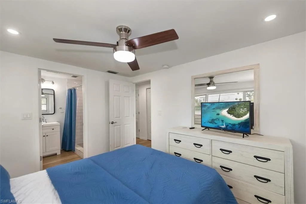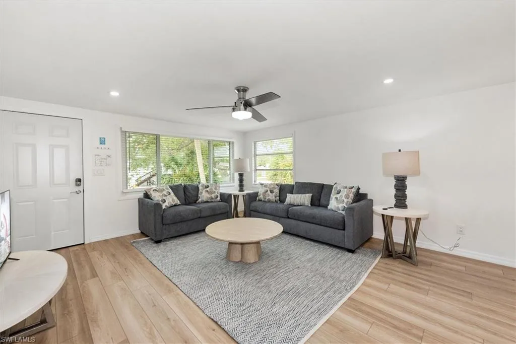 BEST priced elevated WEEKLY rental zone pool home on Ft Myers Beach, only steps from the white sands of the Gulf! This turnkey furnished heated pool home on Ft Myers Beach has been completely remodeled with LVT flooring throughout, bright white shaker cabinetry and an open floor plan. The kitchen also features quartz counters and stainless appliances and overlooks the main living space! Both ample sized bedrooms have their own private bathrooms with custom tiled walk-in showers and amazing natural light. Step outside to your screened upper balcony to enjoy your morning coffee and Tropical views. This remodel was fully permitted and includes a new roof, plumbing,electrical,AC system, and so much more! Perfect for the snowbird, investor, or a combination of the two.