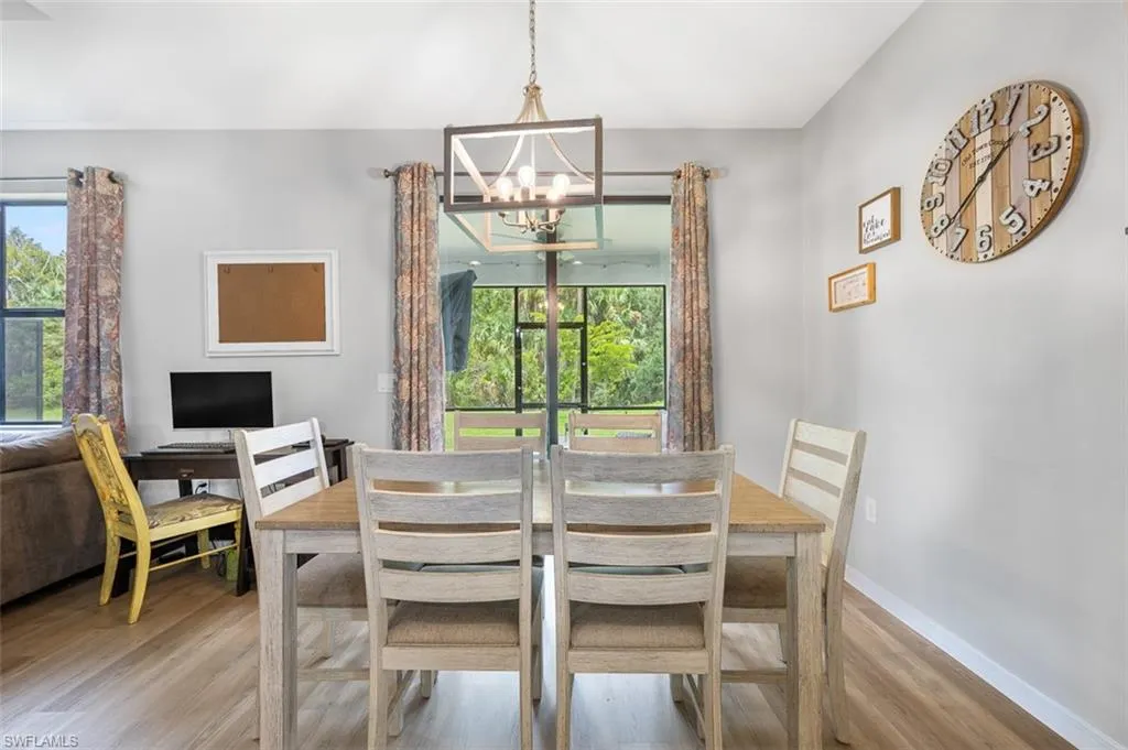 All of these houses look the same! NOT THIS ONE! Subtle character and minimalistic charm in every room! This meticulously maintained 2017 Pulte, Marina model is the hidden gem amongst the cookie cutters! With a split bedroom floor plan, the large foyer separates the 2 guest bedrooms and guest bath. The primary suite is at the back of the home just beyond the spacious great room. This all flows seamlessly due to the LVP flooring that has been installed throughout the entire home and the modern, yet neutral paint scheme. With a splash of color and extra architectural detail to make it a bit more interesting. The wide open kitchen, dining, and living area provide the perfect gathering space for family and friends. Enjoy the tranquility of the preserve backyard with pond views from the screened, covered lanai with a ceiling fan and a screen enclosure so you can enjoy the space year round with no bugs. The primary suite boasts the perfect amount of light, custom accent wallpaper, and a luxurious ensuite including dual sinks and a walk in shower. At the end of the bathroom is the massive walk in closet. Home has a large designated laundry room with plenty of room for storage or an extra fridge or freezer. Garage is beautifully upgraded with epoxy floors as well as an EV Charger/ whole house generator outlet. This charming little gem is nestled on a fully paved (no speed bumps or potholes), dead end street. Closest street to the amenity center where you can enjoy the resort style pool, fitness center, locker rooms, meeting rooms, a playground and kids indoor play room. You may also enjoy the tennis, bocce, or pickleball courts. You don’t want to miss this one! Schedule your showing today!