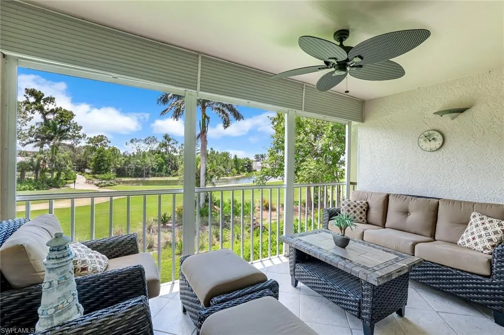 PRICE REDUCTION – FULL GOLF MEMBERSHIP deeded to condo – $60,000 in upgrades – experience resort style living in this tastefully updated 2 bedroom + Den, 2 bath condo overlooking the 9th fairway. Nestled within the highly sought after gated community of Glen Eagle Golf & Country Club in Naples, this residence boasts a new eat-in kitchen with granite countertops, stainless steel Whirlpool appliances, under cabinet lighting and ample cabinetry for effortless entertaining, tile & luxury vinyl plank flooring throughout, cathedral ceiling in living area, 2 custom closets in master bedroom, updated bathrooms and plantation shutters in both bedrooms and kitchen. All Polybeutelene piping replaced in 2022. Enjoy your morning coffee on your southern exposure lanai taking in the beauty of the golf course & lakes. Chatham Square Community has their own pool, hot tub and tennis/pickleball courts in addition to the community amenities. Resort style amenities include heated pool, state of the art fitness center, tennis, pickleball, restaurant, pro shop only to mention a few. Condo also includes a one car detached garage for extra storage. Only 4 miles to downtown Naples, where you can enjoy Fine dining, Upscale shopping and Art Galleries on 5th Avenue and beautiful white sandy beaches.