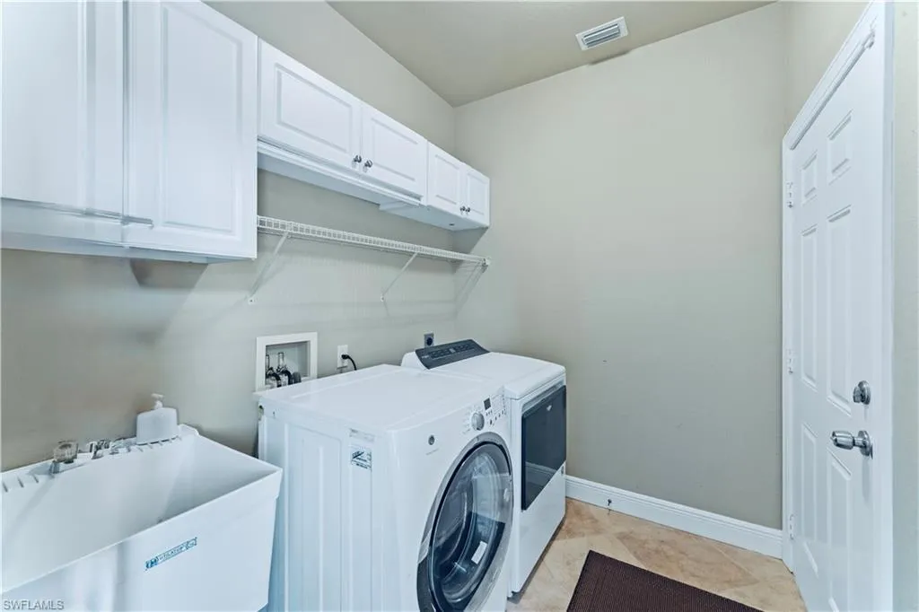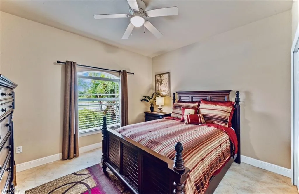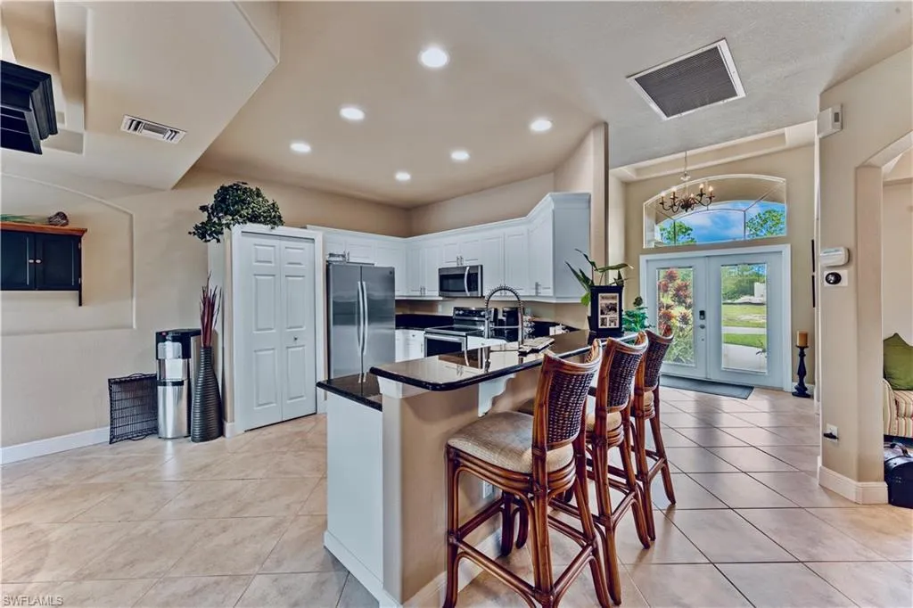 Additional charms include elegant recessed lighting, premium fixtures, protective HURRICANE shutters, a lushly irrigated landscape, security cameras for peace of mind, a convenient garage fridge and new pool and water treatment systems. The airy laundry room under air adds comfort and ease. Nestled outside a flood zone, this enchanting home is just minutes from everyday convenience and a quick, effortless commute to Fort Myers. Move-in ready with a fully furnished option; furniture can be purchased separately. Schedule your showing today!