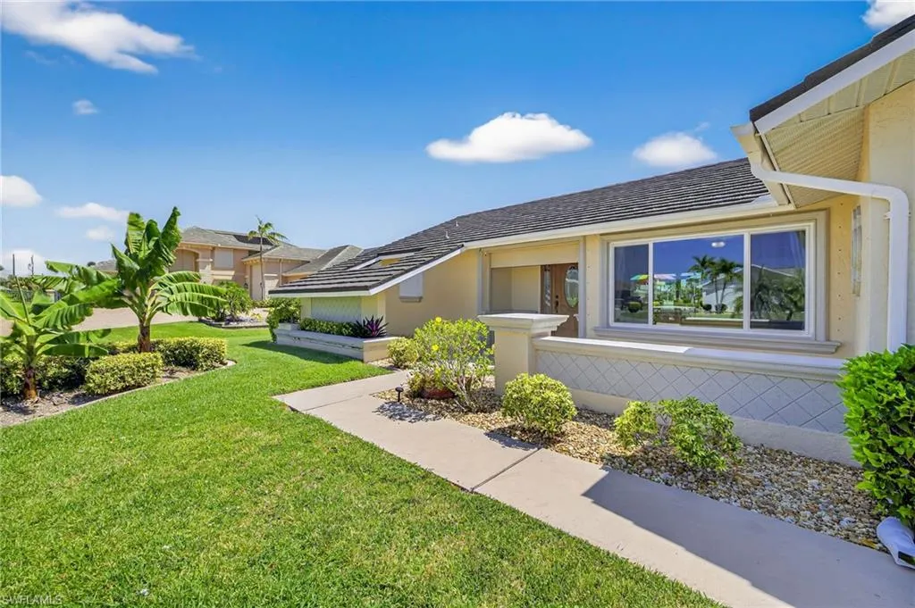 Cape Coral is home to this wonderful Gulf Access Pool Home! This property offers a gorgeous pool, three bedrooms, a living room, and a family room, creating a comfortable and spacious living environment. A highlight of this property is the impressive 80′ composite boat dock, complete with a 30′ Captain’s Walk, a hefty 16,000# lift with a generous 12′ beam. Enjoy the convenience of sailboat access with NO bridges! It is approximately a 15-minute boat ride to the canal exit at the south end of Cape Coral, and it’s conveniently close to two marinas, perfect for the boating enthusiast. This property features an oversize, well-manicured lot situated on a peaceful cul-de-sac. The spacious, 106 ft. wide lot offers privacy and ample lawn space, complemented by 106 ft of seawall with convenient boat docking. The home has been upgraded with new impact windows and sliders for enhanced security and energy efficiency. Furthermore, it features a newer 2023 stone-coated steel hurricane shake Pro Line roof, a significant investment with a $43k value and a transferable 50-year warranty, ensuring long-term protection. Inside, the home is impeccably maintained with tile flooring throughout. It is located in a beautiful and convenient area, offering easy access to restaurants and shopping destinations. Key amenities are nearby, including Publix, which is less than 2 miles away, Sanibel/Fort Myers Beach bridges are only 12 miles, and the airport is a short 16-mile drive. [All measurements are approximate]