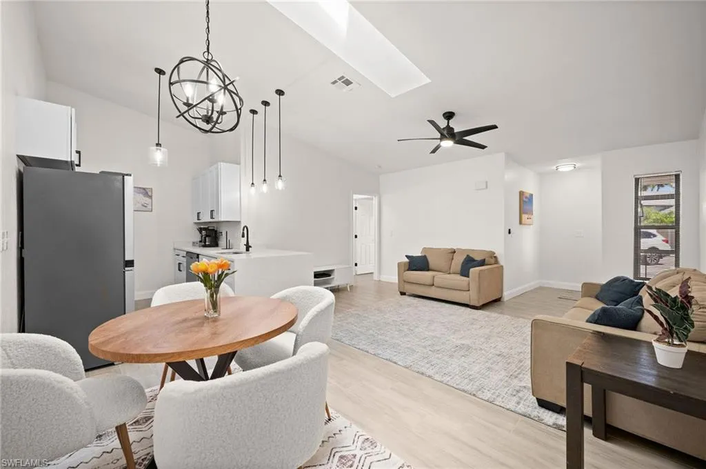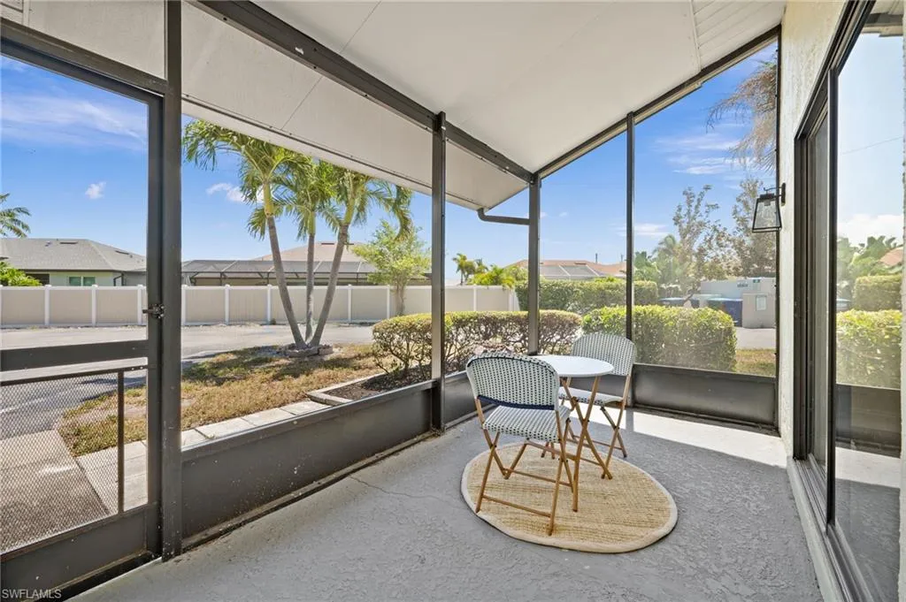 Desirable Cape Harbor area! Pet friendly complex with up to 3 pets. Seller is open to lease with an option to purchase up to 3 year ask for details. This Fully Renovated Home has a Custom Coastal Style,Gourmet Open Concept Kitchen, Granite Countertops, New Stainless Steel Appliances. Newly redone Tile flooring, doors and trim molding throughout, and designer lighting. This unit offers a split floor-plan, the primary bedroom has its own private entrance, walk-in closet & a separate coat closet, along with a updated primary bathroom. The great room is lit by beautiful natural light through the skylight and the second bedroom has a bathroom just out side the room. Around the community you will find a relaxing heated pool, racquetball, basketball, bocce, shuffleboard and clubhouse. Courtyards of Cape Coral South is just minutes away from shopping, restaurants and in close proximity to the Cape Coral bridge. Check out your piece of paradise today!