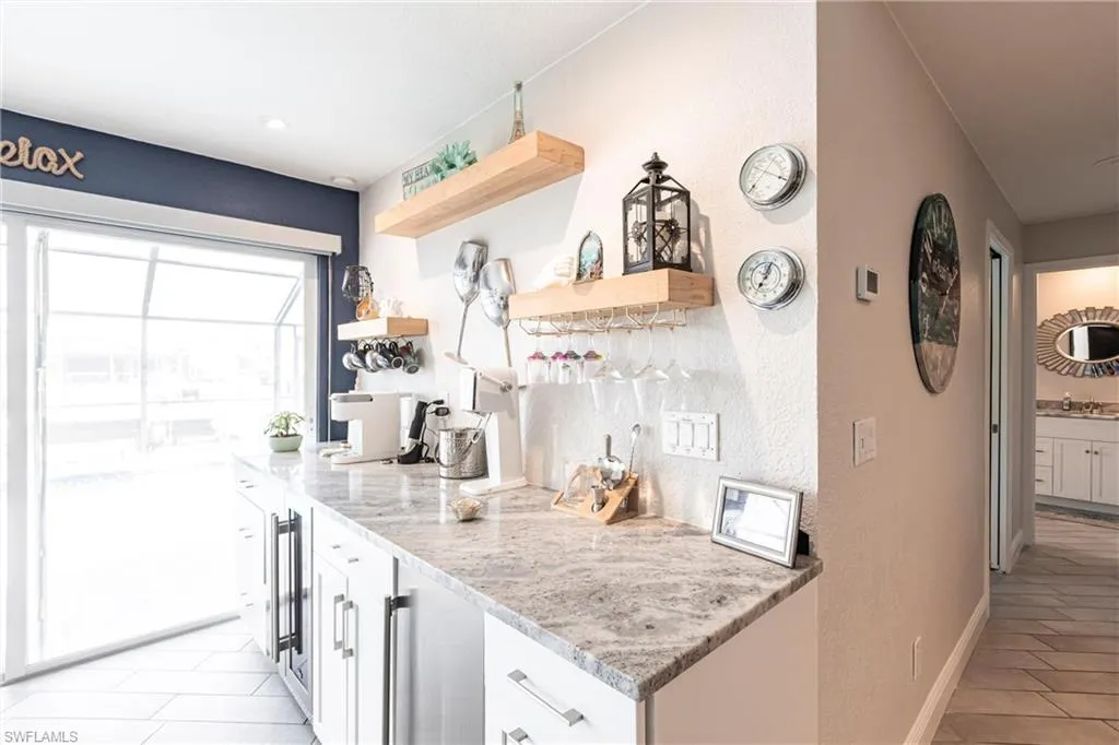 storage in the island and the wine and coffee bar which includes a beverage cooler and ice maker.