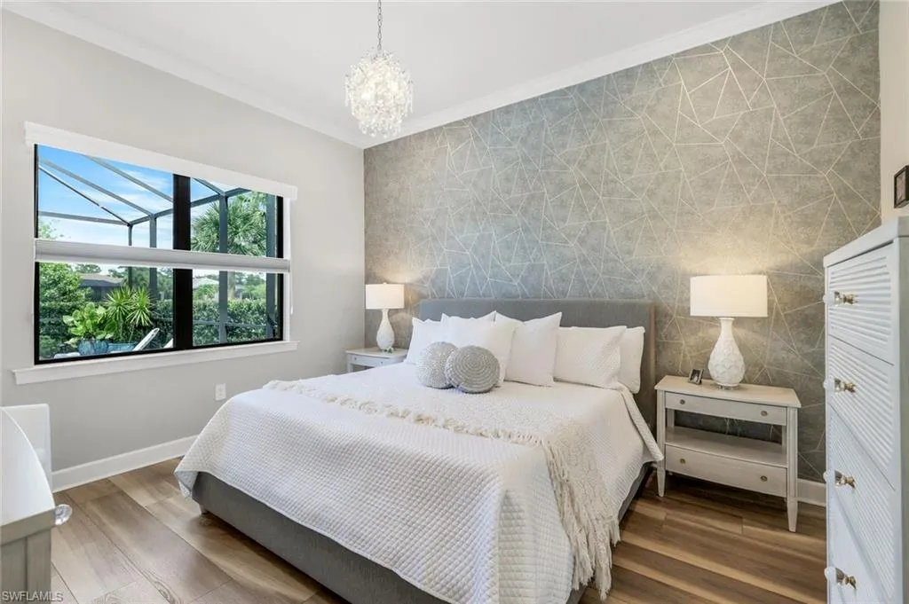 Discover luxury and refined living in the prestigious, amenity-rich community of Greyhawk at Golf Club of the Everglades. This beautifully enhanced Abbeyville model (1,868 sq. ft.) offers timeless elegance, custom upgrades, and the ultimate Florida lifestyle. From the moment you arrive, lush bougainvillea and professional landscaping set the stage for a home that feels both warm and sophisticated. Step through the screened entry into a light-filled foyer where charm and craftsmanship create an inviting, cottage-inspired ambiance. Designed with versatility in mind, this residence offers 2 bedrooms, 2 bathrooms, and a spacious den that can easily convert into a third bedroom. Every detail reflects luxury, from designer-painted interiors with accent wallpaper to coffered ceilings, crown molding, chandeliers, and custom window treatments. The heart of the home is a chef’s kitchen with gas appliances, pantry, and a generous island, seamlessly opening to the dining and gathering areas. A bonus Florida room provides additional space for a home office, reading nook, or art studio, leading out to the showpiece of the home—the resort-style screened lanai. Here, enjoy an 11×26’ saltwater pool with autofill, overlooking a tranquil lake and unforgettable sunset views. Perfect for entertaining or unwinding, this private retreat also features motorized storm shutters, hurricane-impact windows, and a whole-home generator with 10-year warranty for peace of mind. Additional highlights include: Custom organized closets and ample storage throughout, a large laundry room with cabinetry and an extended 2-car garage with epoxy flooring, utility sink, and 150 sq. ft. of floored attic space. Residents of Greyhawk enjoy a vibrant lifestyle with two clubhouses, year-round dining, a heated resort pool and lap pool, fitness center, spa, firepit, and Tiki bar. Sports enthusiasts will love the pickleball, bocce, and tennis courts, while golf lovers can enjoy the 18-hole championship course, driving range, and putting green. A dedicated Lifestyle Director curates social events, while a Sports Director ensures endless activity options. With low HOA fees, no CDD, and a mandatory social membership (optional golf membership), this home is ideal for full-time residents, seasonal escapes, or investment opportunities. This property is more than a home—it’s a lifestyle. Come experience the luxury and vibrancy of Greyhawk living.