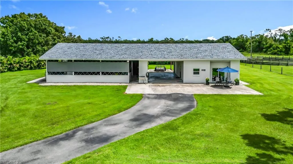 Discover the perfect blend of comfort, privacy, and functionality with this completely renovated 3-bedroom, 2-bath ground-level home situated on 5 fully fenced acres in Sarasota. Step inside to find a beautifully updated residence featuring a modern open layout, stylish finishes, and plenty of natural light throughout. This home has been fully wind mitigated with all impact windows and doors as well as the barn and office are protected The spacious kitchen flows seamlessly into the living and dining areas, creating the ideal setting for family living and entertaining. Both bathrooms have been tastefully renovated, and the home is truly move-in ready. There are endless possibilities with this property. You can add another home, pool or anything that will fit within the 5 acres! Outdoors, the property shines with a massive 4,000 sq. ft. barn/garage complete with a versatile bonus room—perfect for hobbies, storage, a workshop, or even future customization. There is an RV pad with full 30/50 amp RV hookup with water and waste hookups. With 5 acres of fenced land, there’s plenty of room for animals, gardening, or simply enjoying the peace and quiet of country-style living, all while being just a short drive from Sarasota’s shopping, dining, and world-famous beaches. This property is a rare find—private, spacious, and ready for its next owner.