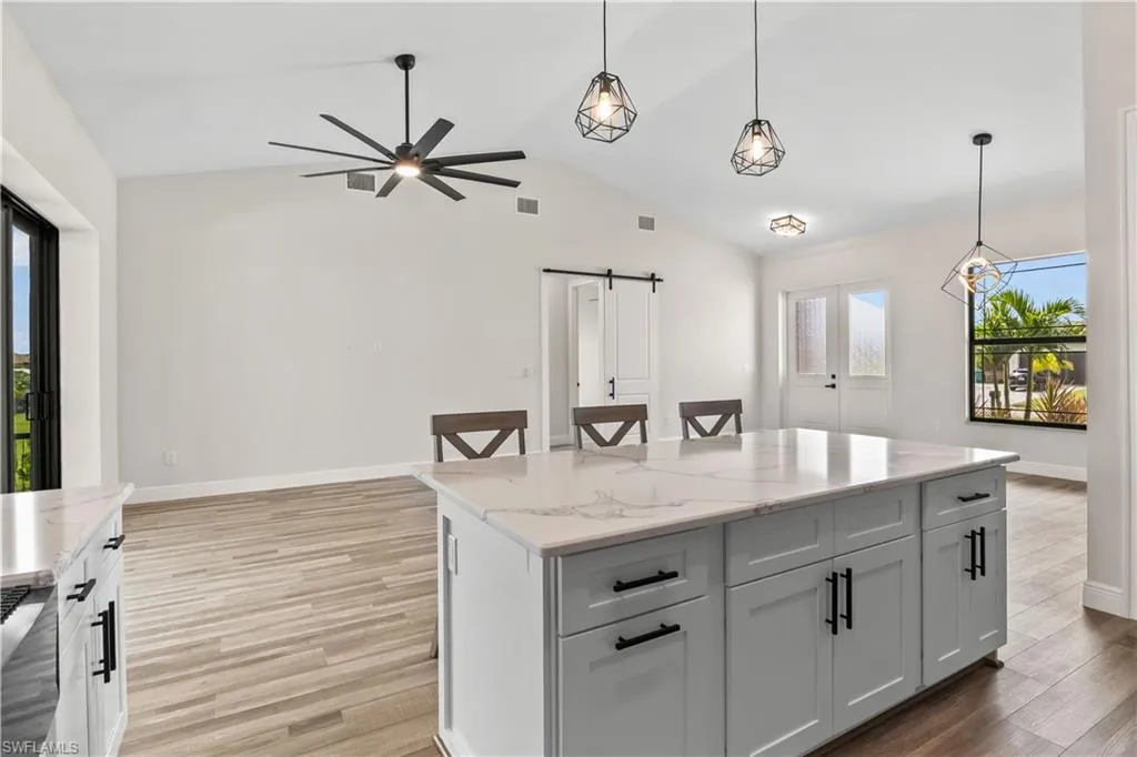 Don’t miss the opportunity to own this just-completed, never-lived-in Gulf Access Pool Home, backed by Builder and Mechanical warranties that transfer to you at closing for peace of mind. Step inside and you’ll immediately notice the high-end finishes and thoughtful upgrades, including: Impact-resistant windows and sliders throughout, Level 4 Quartz countertops in kitchen and bathrooms, Whole-home Reverse Osmosis (R/O) water filtration system, Custom soft-close, dovetail cabinetry, Upgraded appliance package with a stylish gunmetal farm sink, Luxury wood-look vinyl plank flooring, Wood shelving in all closets, Sleek black hardware and upgraded lighting fixtures. The exterior is just as impressive, designed for both style and function: