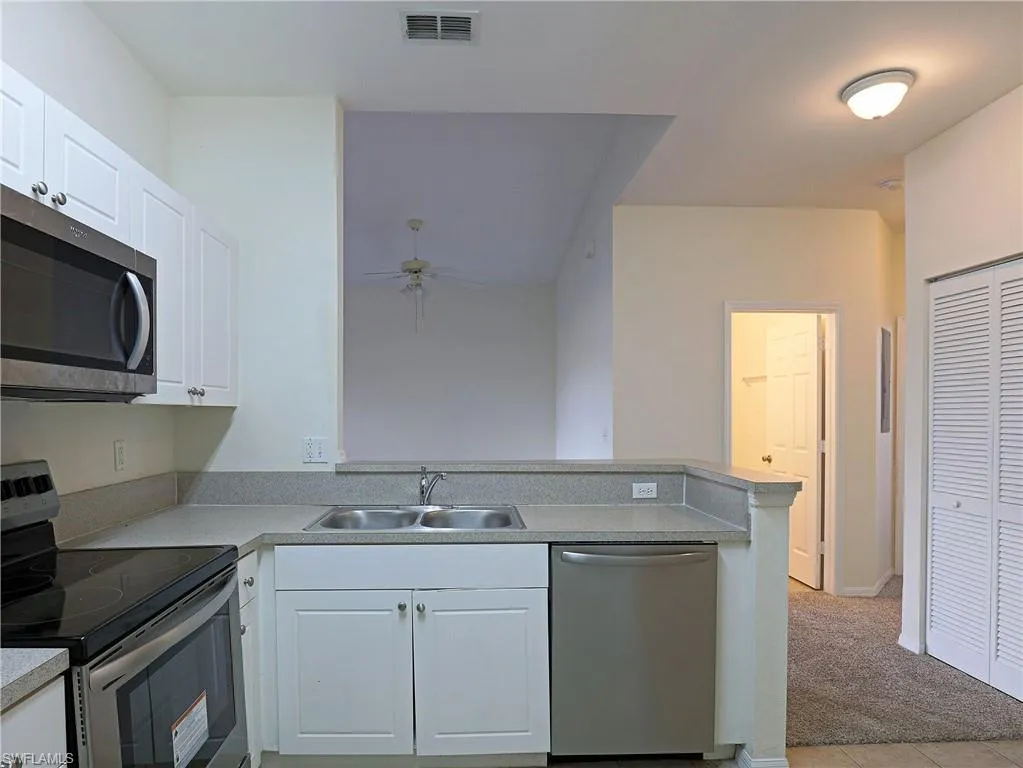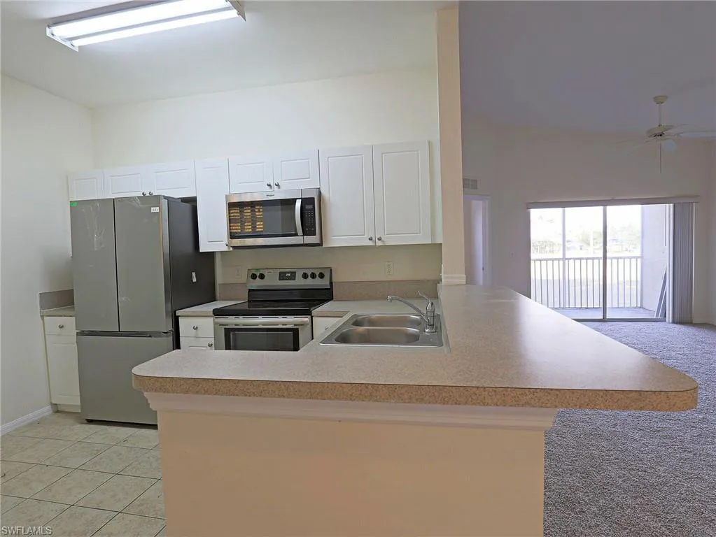 Brand new Hot water Heater. Gorgeous, ready to move-in three bedroom, 2 Bath Bellasol condo. New kitchen appliances and new flooring. Located on the 2nd Floor with cathedral ceilings, large primary bedroom with walk in closet, Open Kitchen with breakfast bar/ eating area. Laundry in residence is a huge plus! Enjoy the peaceful resort style centrally located gated community with resort style amenities. Lakeview clubhouse with pool, spa, and fitness center, lush tropical landscaping. 20 acre lake!