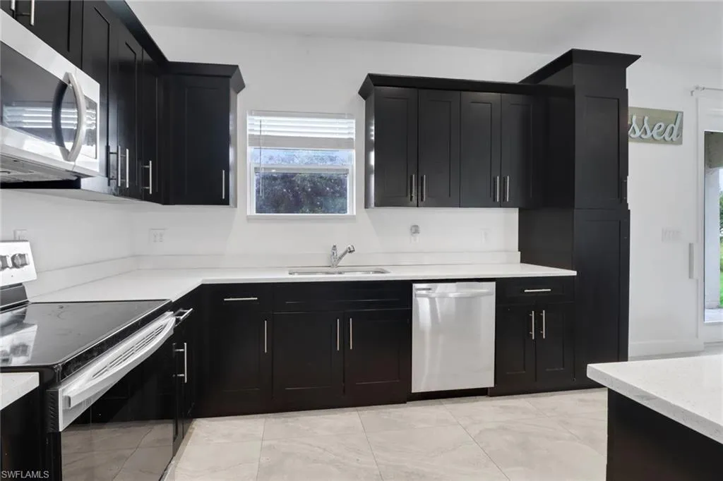 Welcome to this stunning home nestled on a generous 2.27-acre lot in the heart of beautiful Golden Gate Estates. Designed with comfort and functionality in mind, this property features a spacious open floor plan with 3 bedrooms, a versatile den perfect for a home office or guest space, 2 full bathrooms, a 2-car garage, and a relaxing screened lanai. The kitchen is a true highlight, boasting stainless steel appliances, granite countertops, and rich wood cabinetry, making it an ideal space for cooking and entertaining. Throughout the home, you’ll find elegant tile flooring and impact-resistant windows that offer both style and peace of mind. A paved driveway leads you to the front of the home, while a full sprinkler system helps maintain the expansive, well-manicured lot. Located just minutes from schools, gas stations, Publix, and local pharmacies, this home offers the perfect balance of privacy and convenience. Don’t think of cost—think of value! This is an exceptional opportunity to own a beautiful, well-appointed home in one of Naples’ most desirable areas.