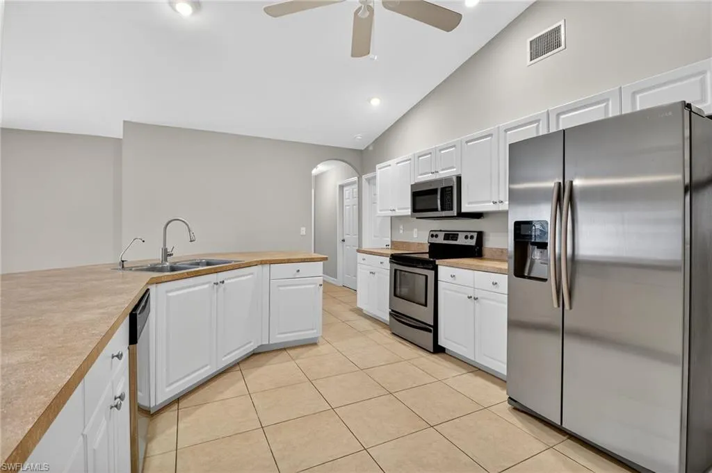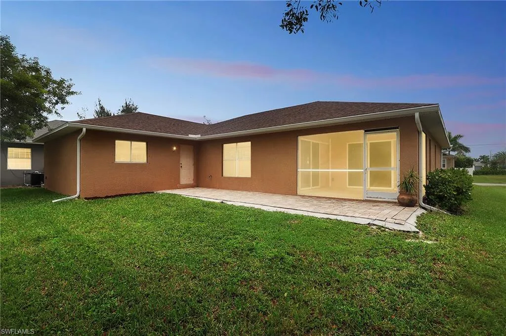 This spacious home is just 1/2 a block from Gulf access properties and conveniently located near several parks and schools. You’ll love the split floor plan featuring the owners wing with an exceptional en suite bath including soaking tub with separate shower, dual sinks and two closets. The heart of the home is bright and welcoming with abundant space for guests to gather. Enjoy a festive affair around a formal table or something more low key. A glorious kitchen with stainless appliances is just what you need to make cooking and entertaining a pleasure. Spread out and enjoy everything this home has to offer when you enjoy evenings in the lanai or sunny afternoons grilling on the paver patio. 3 additional bedrooms and a second bath make way for everything you could need from a nursery to a home office, art studio to gym space and anything in between. A tidy laundry room in the home and a 2 stall garage for tools and toys are the last of your must-haves list. This home is move-in ready, just unpack and enjoy