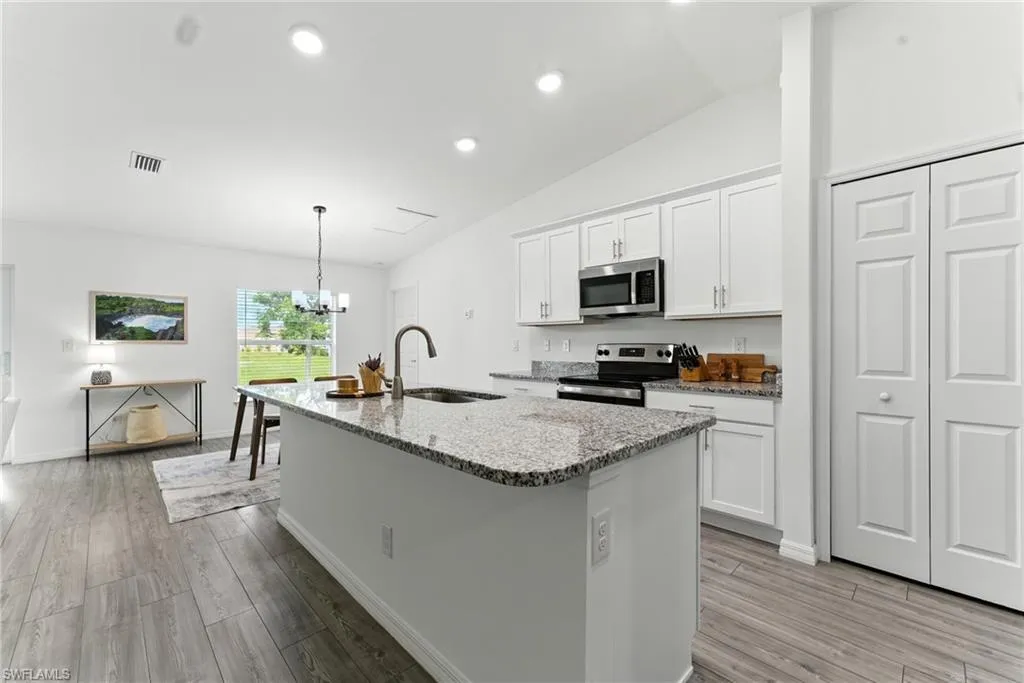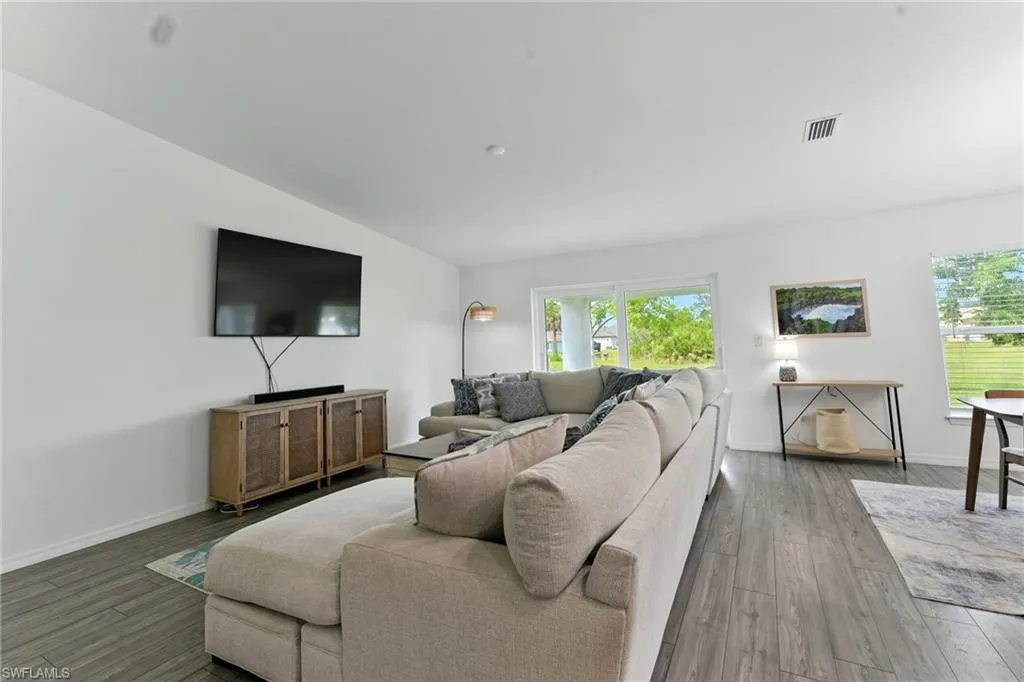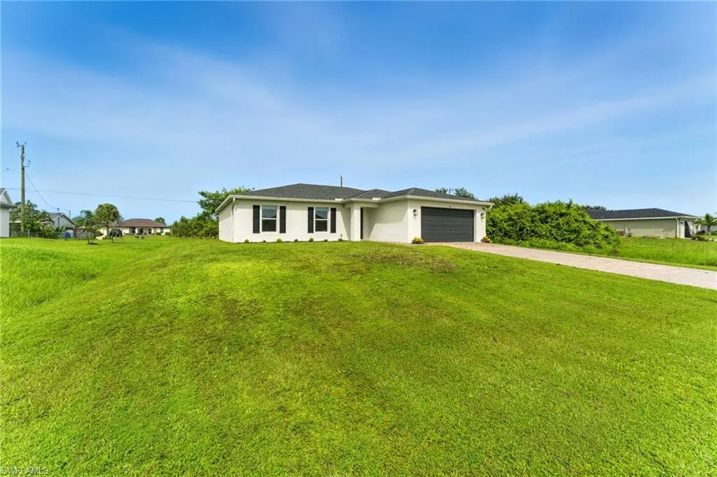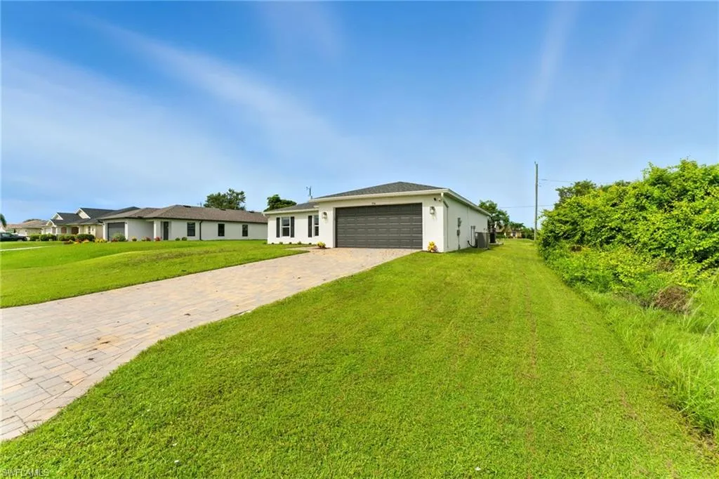 SELLER OFFERING $4,000 TOWARDS BUYERS CLOSING COSTS!!!!! Why wait for new construction when this 2022-built 4-bedroom, 2-bath home is ready for you now? Featuring quartz countertops, an open-concept design, and abundant natural light, this property stands out with valuable extras that most new builds don’t include—a refrigerator, washer and dryer, and custom window treatments—saving you time and money from day one. LVP in main living areas. Outside, you’ll find a pavered driveway, automatic sprinkler system, and a spacious backyard perfect for creating your own outdoor retreat. Centrally located in Cape Coral, this move-in-ready home offers the modern finishes you want, the conveniences you need, and the location you’ll love.