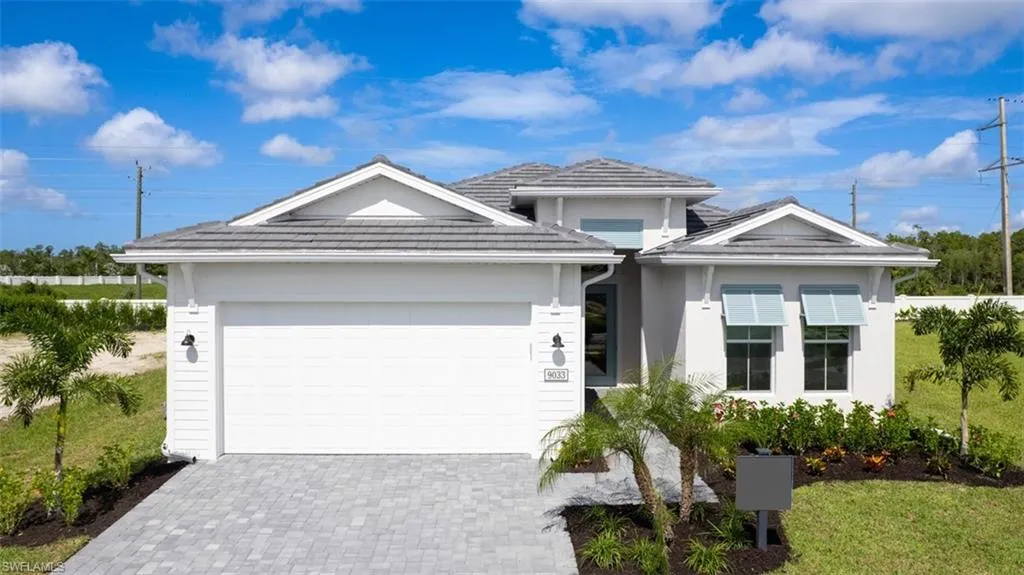 Welcome to the Pinellas—a breathtaking single-story home where style, comfort, and Florida living come together in perfect harmony. Nestled on a generous quarter-acre lot, this showpiece residence offers the ultimate blend of indoor elegance and outdoor serenity with your own private, screen-enclosed pool and spa—perfect for unwinding in peace or entertaining in style. From the moment you step through the extended foyer, you’re welcomed by a sense of space and sophistication. The open-concept design flows effortlessly between the expansive great room, casual dining space, and a true chef’s kitchen, thoughtfully appointed with a large quartz island, premium stainless steel appliances including a gas range cooktop—perfect for gourmet cooking—ample cabinetry, and a walk-in pantry. The primary bedroom suite is a sanctuary of its own, featuring dual walk-in closets and a spa-like bath with double vanities and a frameless glass walk-in shower, designed for both function and indulgence. Two spacious guest bedrooms provide comfort and flexibility for family or visitors, while a separate enclosed home office with elegant French doors offers the perfect private workspace—each space crafted with the same attention to detail, quality, and design found throughout the home. Built to the highest standards with impact-resistant windows and doors, this home is as secure and efficient as it is beautiful—and it’s covered by a builder’s warranty for added peace of mind. All of this, located in a vibrant Naples community where residents enjoy exclusive access to a resort-style amenity center with a sparkling pool, state-of-the-art fitness center, elegant clubhouse, pickleball, tennis, and a full-time lifestyle director who curates engaging events and activities all year long. This is your chance to live the Florida dream in a brand-new home that has it all—luxury finishes, custom pool and spa, expansive lot, and a move-in ready experience like no other. Please see MLS supplements for interior design/floor plan layout. Lot 91. Ask your sales consultant about our exclusive rate buydown program and how it can help lower your monthly payments!