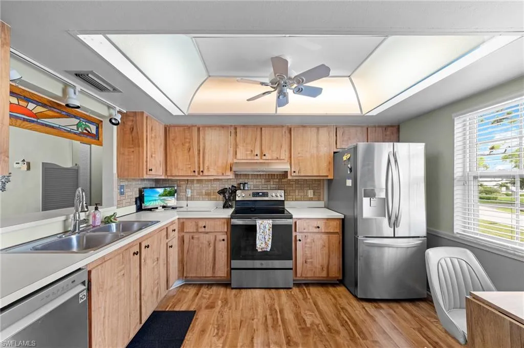 Charming FULLY FURNISHED 2 Bedroom, 2 Bathroom Condo in the Foxmoor Community. This beautifully maintained, end-unit condo is located on the 2nd floor, offering lots of natural sunlight, and is perfect for snowbirds or people who want to enjoy sunny SW Florida full time. Beautiful screened-in lanai overlooks the well-manicured grounds and is perfect for enjoying the Florida sunshine, morning coffee or a quiet evening. Lanai also comes with an extra storage closet that houses washer and dryer, for added convenience. The primary suite features a walk-in closet and an en-suite bathroom. Community amenities include a pool, gazebo, BBQ/picnic area, and shuffleboard courts. Enjoy peace of mind with hurricane impact windows and doors, a new roof installed in 2024, and a new AC and furnace from 2023 with a warranty through January 2028. Additionally, the home has never experienced flooding or hurricane-related damage. This condo is in a desirable neighborhood that has easy access to shopping, dining, and entertainment. It is conveniently located minutes away from shopping centers, grocery stores, 1-75, downtown Fort Myers & airports. This is an over 55+ Community with LOW HOA fees of $495 PER MONTH, which INCLUDES FLOOD INSURANCE! Don’t miss this opportunity to own a slice of paradise and to see all that this beautiful condo has to offer.