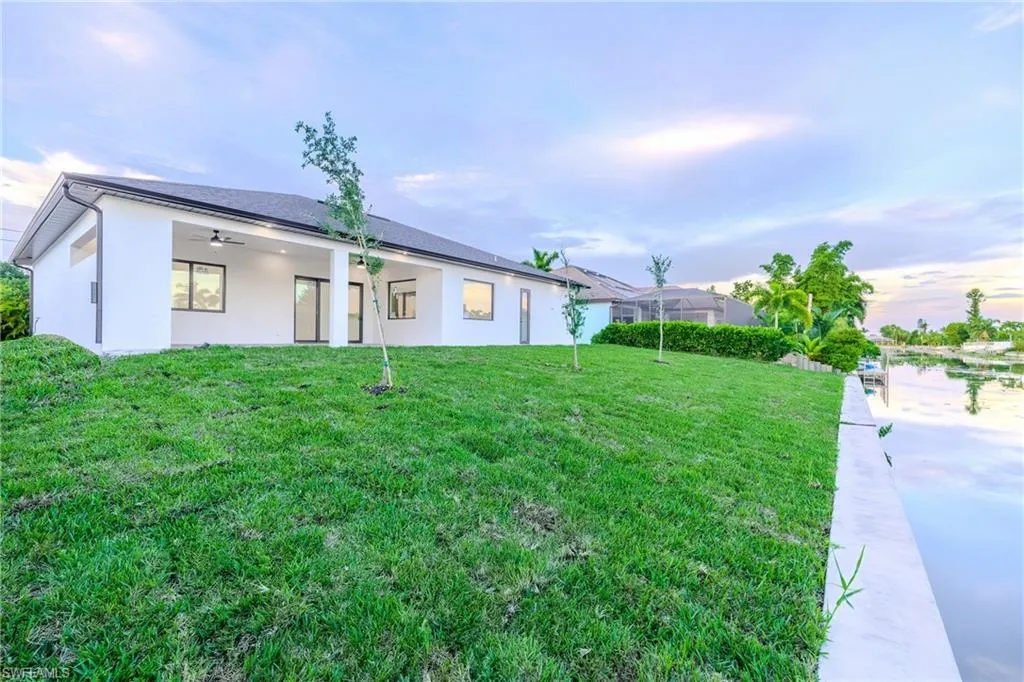 Luxury Waterfront Home in Cape Coral, Significant Price adjustment, Act Fast it won’t last. This stunning 4-bedrooms, 3-bathroom residence with 3,295 SQ. FT. Total. Offerings the perfect blend of elegance, comfort, and Florida waterfront living. Has been custom built to perfection with meticulous attention to detail, thoughtful design, and numerous luxurious upgrades throughout. High tray ceilings with open concept design that integrates the living, dining, and kitchen areas, you will love the large quartz island, and luxurious cabinets, creating a modern and elegant look, with a convenient pantry for extra storage space, features hidden charger station for phone with outlets, speakers and modern pendant lighting, Kitchen is upgraded with Samsung appliance package that include a cooktop, built-in microwave oven, stainless steel appliances. The Master Bedroom includes 2 walk-in closets and an ensuite that boasts a double sink, large 2 showers, soaker bathtub, LED anti-fog mirror, quartz countertops with large drawers for storage, designed like a private spa with an oversized layout. A spacious laundry room with a sink, and quartz counters with abundant cabinets that makes daily living even more practical and organized. Additional highlights include a triple car garage with Epoxy floor and direct access to a navigable canal that connects to multiple lakes, perfect for boating, fishing, or simply enjoying peaceful water views. With natural light, and high-end finishes throughout, this home is ideal for those seeking both luxury and lifestyle in one of Cape Coral’s most desire locations. All assessments paid with city water & sewer in place. Close to hospitals, shopping, dining, gyms, parks, movie theater, bowling, and plenty of local businesses. Easy access to Del Prado, Santa Barbara, Pine Island Rd, and Veterans Pkwy. Just minutes from some of Southwest Florida’s most beautiful beaches- ideal for consistent income and long-term value. Strong Airbnb Investment Opportunity