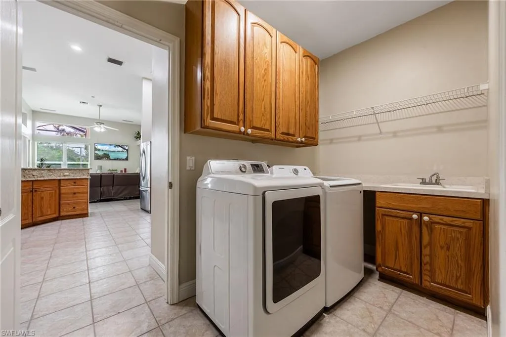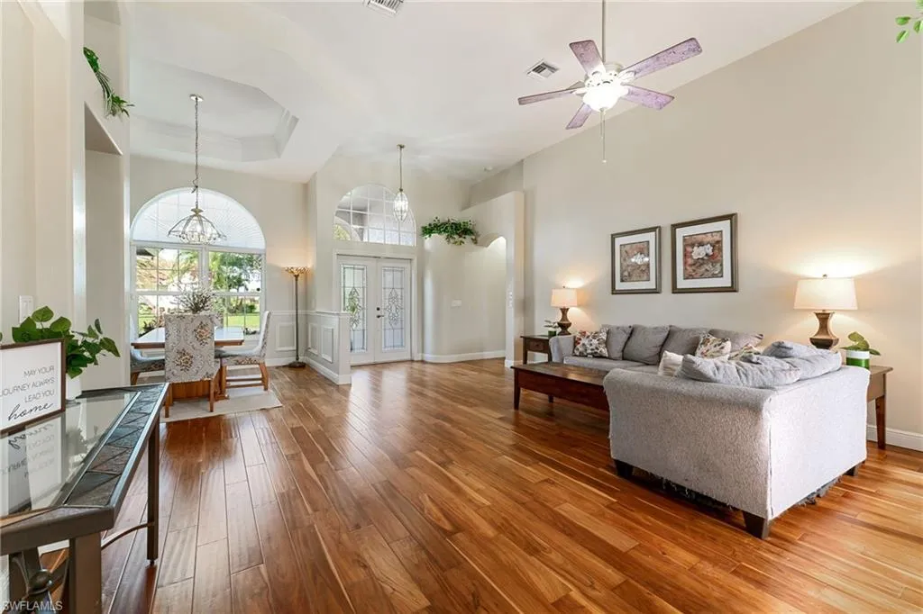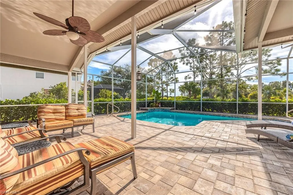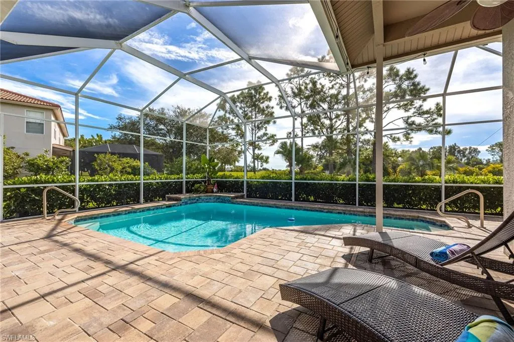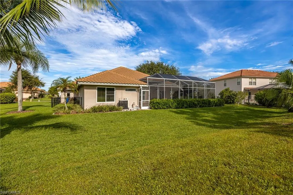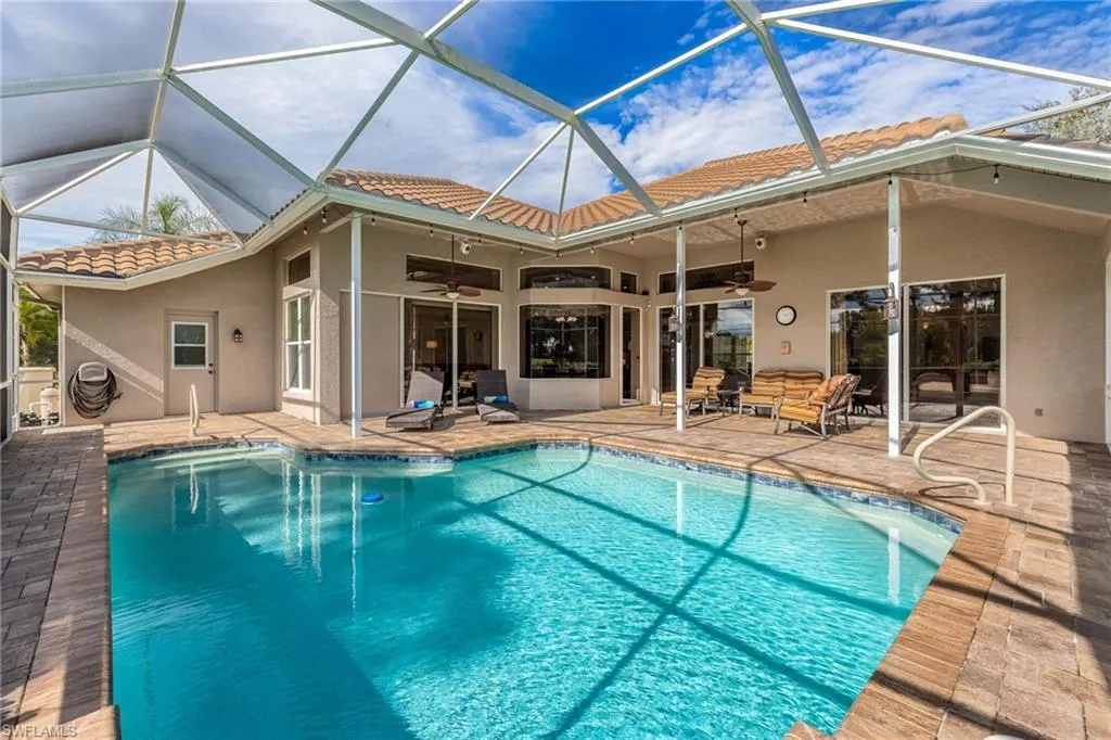 Welcome to this beautifully updated 4 bedroom, 3 bathroom, 2,387 square foot home, nestled in the beautiful Westminster Golf Club Community. Conveniently located just outside the heart of Fort Myers, enjoy endless shopping, dining, and entertainment options just minutes away. The spacious layout provides ample space for family living or entertaining guests, including a guest suite just off the pool deck with a dedicated bath. Recent upgrades include a new tile roof (2017), impact windows and front doors (2020), new electrical panel (2021), 4-ton HVAC unit (2023), and fresh interior paint (2023) – ensuring peace of mind for years to come. The kitchen boasts wood cabinetry, sleek granite countertops, and a walk-in pantry, perfect for those who love to cook and entertain. The primary suite overlooks the pool through tall glass sliding doors, offering views and direct access to your outdoor oasis. Enjoy the remodeled walk-in shower, jetted soaker tub for ultimate relaxation, dual sinks, and a large walk-in closet. With three additional bedrooms you’re sure to have plenty of space for family to stay for the holidays! The electric heated pool, new Jandy VS FloPro pool pump (2024), and recently sealed paver deck are ideal for year-round enjoyment. Three sets of 8-foot glass sliding doors seamlessly connect the indoor living spaces to the lanai, complete with surround sound speakers to enhance your outdoor experience. The 3-car garage features a 24k BTU split unit (2021) and additional attic insulation for ultimate comfort, whether you’re storing your gear or working on your next project. The community offers a clubhouse, restaurant, and low HOA fees, adding convenience and value to your lifestyle. This stunning home is move-in ready and waiting for its new owner. Whether you’re relaxing by the pool, hosting friends and family, or enjoying the peace of your golf course views, this property is truly a Florida dream.