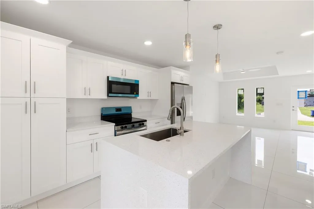 LOCATION LOCATION LOCATION, Discover this impressive and modern NEW CONSTRUCTION HOME ideal for first-time buyers or investors, located in the southwest area of Lehigh Acres, Florida, in a high-growth area of the SWFL with easy direct access to Miami, Naples, Fort Myers, Cape Coral, Punta Gorda, Sarasota, Tampa With almost 1,100 square feet of living space, this modern residence features a modern open layout that includes 3 bedrooms, 2 full bathrooms and a covered one-car carport with epoxy flooring, a very functional design that allows you to comfortably store more vehicles if needed. The chef-inspired kitchen stands out, with elegant quartz countertops, new stainless steel appliances, soft-close cabinets and ample counter space for greater comfort. The wonderful master suite has a walk-in closet and bathroom with a glass-enclosed shower. Discreet laundry area with a washer and dryer set included. High-end finishes include tile flooring throughout the home, modern light fixtures and high-end ceiling fans, and high-impact doors and windows. The backyard is simply stunning, offering space for a future pool and deck, and is equipped with new sod and irrigation system. The home features an In-Wall Pest System – Keep The Bugs Out, creating a protective barrier against unwanted pests around the perimeter of the living area. The home also has a well and septic tank. Additionally, it comes with the 2-10 Home Buyers Warranty, ensuring comfort and quality of life in the growing SWFL area.