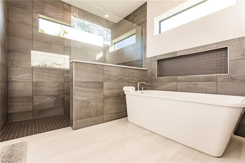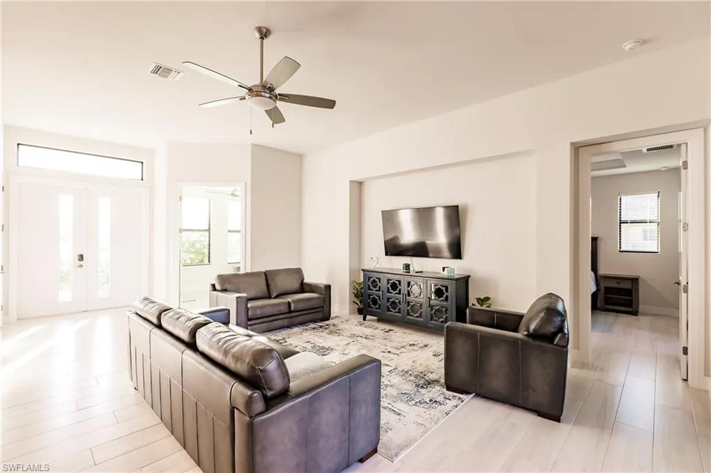 This home is equipped with a $75,000 fully paid solar system, significantly reducing energy costs and enhancing efficiency. Premium finishes abound, including wood look porcelain tile floors, quartz countertops, soaring 11-foot ceilings, and custom 8-foot doors. Hurricane impact windows and doors provide peace of mind, while modern LED lighting, a sleek flat tile roof, elegant brick pavers, and professionally designed landscaping highlight the attention to detail.