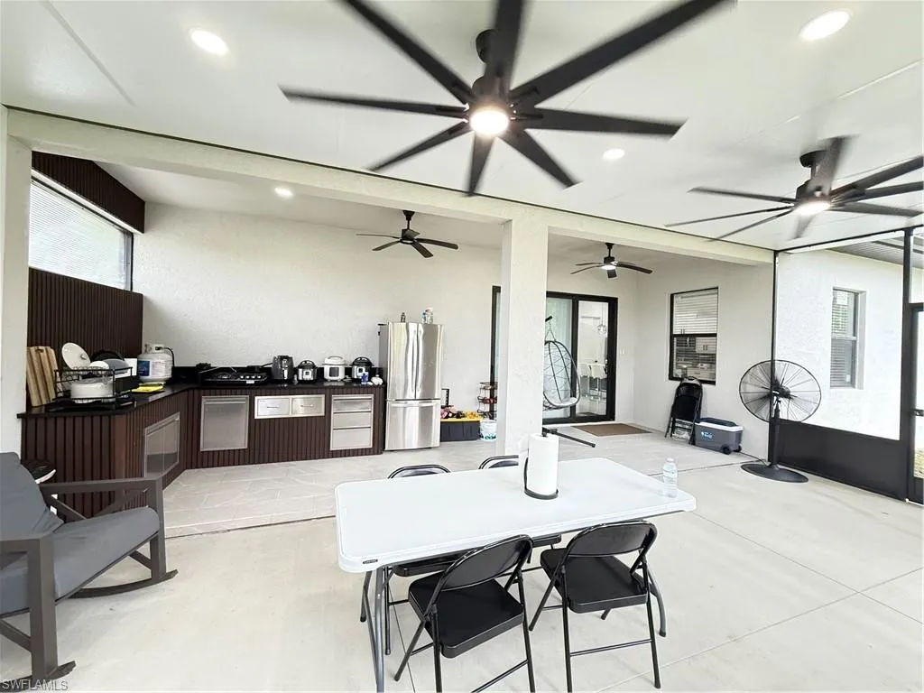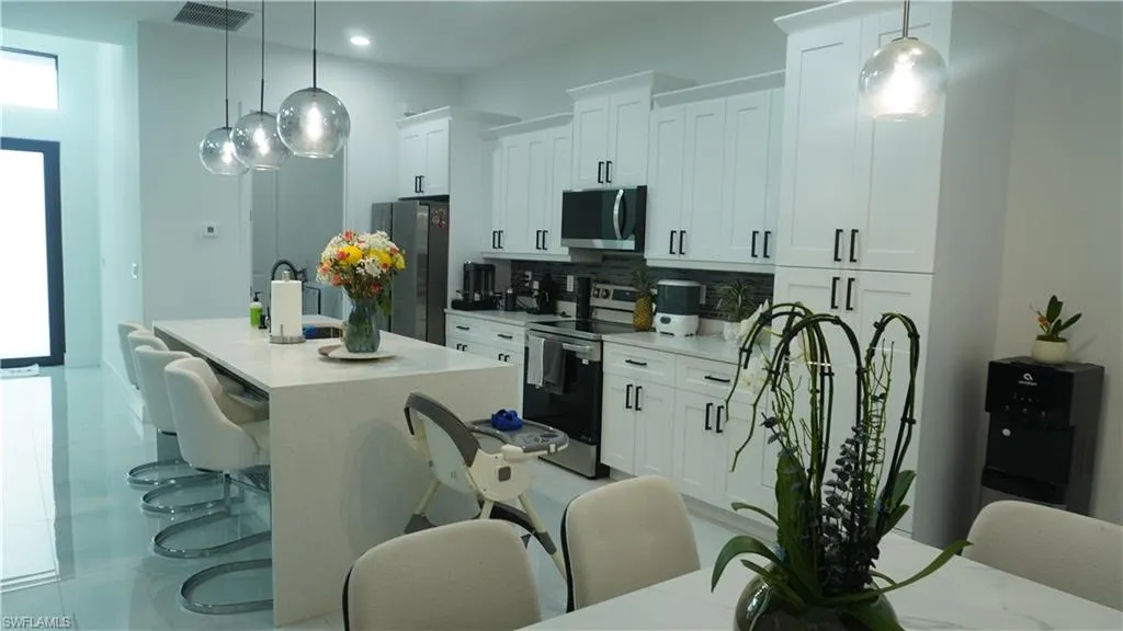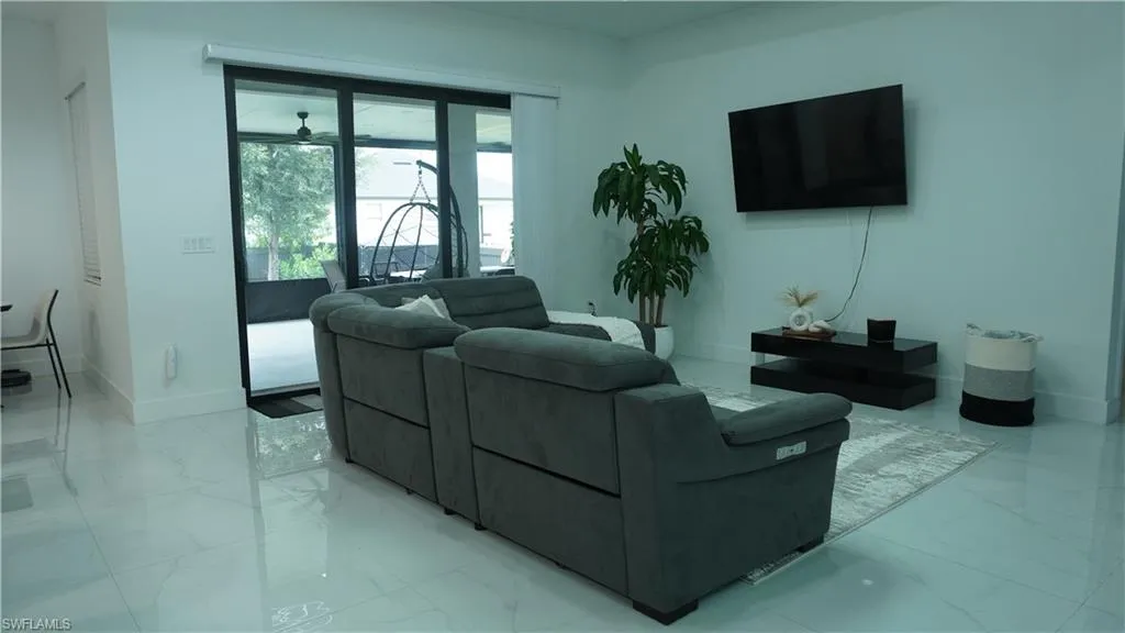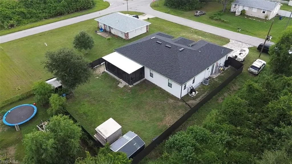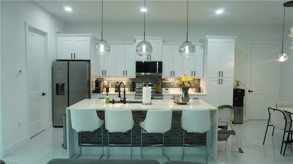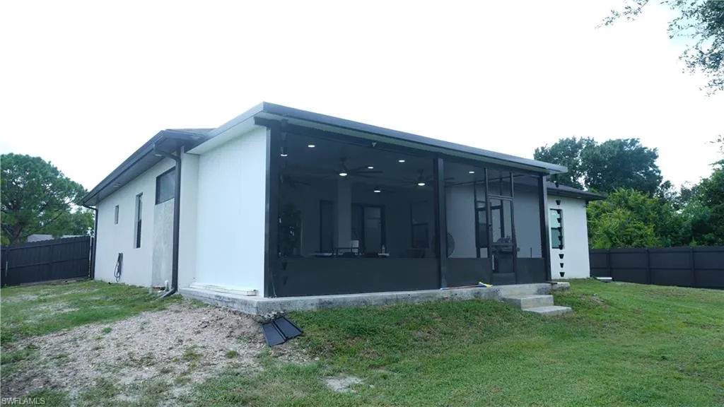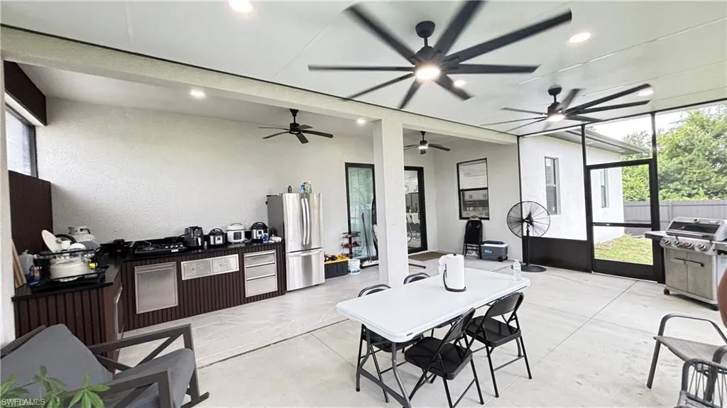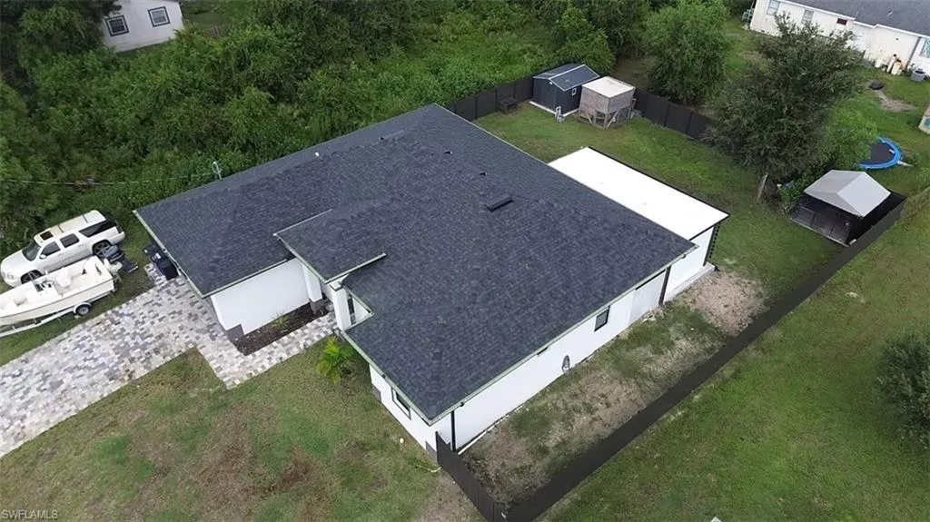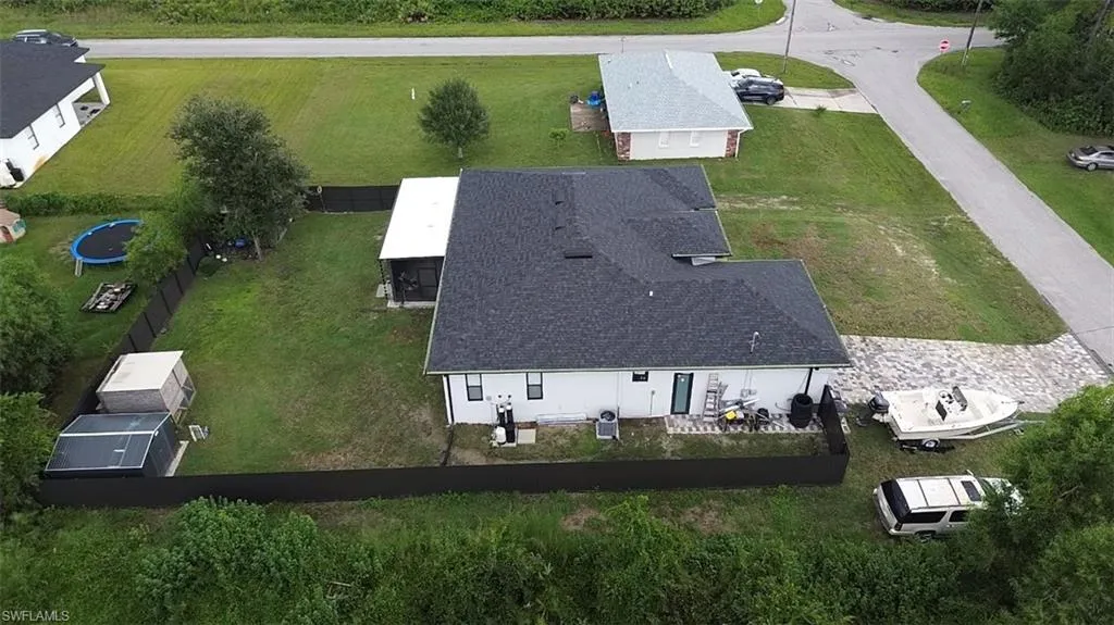Step into this Stunning new construction in the heart of Lehigh Acres! This 3-bedroom + Den, 2-bath home features soaring cathedral ceilings, impact windows and doors, and elegant marble flooring throughout. Extended screened patio with outdoor kitchen set-up. The chef’s kitchen shines with quartz countertops, stainless steel appliances, and a large island perfect for entertaining. The spacious primary suite offers dual walk-in closets and a spa-like bath with dual sinks. With a lush St. Augustine lawn and every detail thoughtfully designed, this home blends modern luxury with everyday comfort — move-in ready and waiting for you!