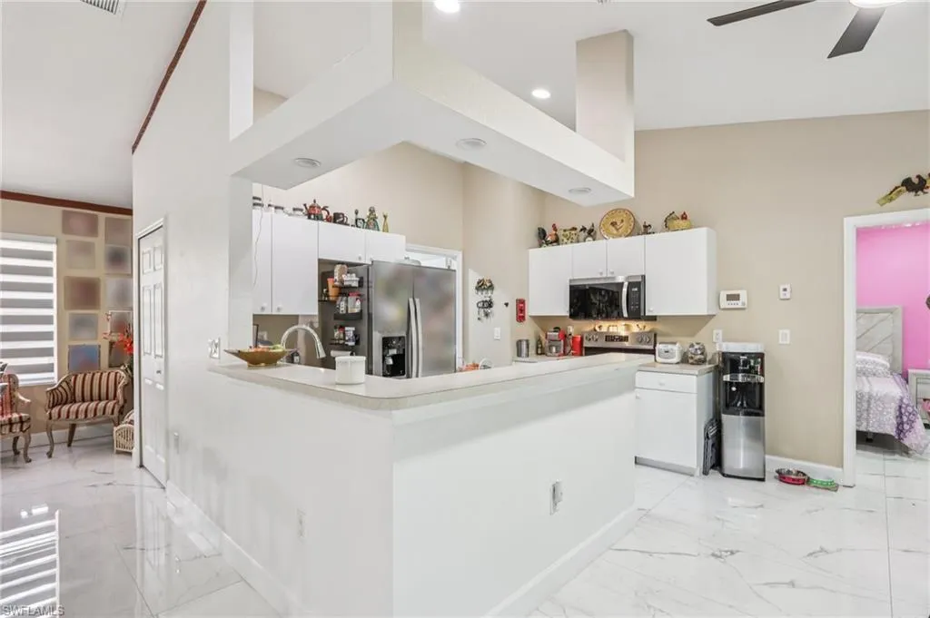 PRICE IMPROVEMENT! Come see this beautifully updated and freshly painted 3 bed 2 bath home. This home offers tons, from the new ceramic tile, to updated guest bathroom, and updated master bathroom. The kitchen appliances have been upgraded with a new stove, dishwasher, refrigerator/freezer, and matching microwave replaced August 2025. In addition, the laundry includes a washer, and dryer also replaced earlier this year. The water heater, and garage door opener have both been updated in 2025. If that isn’t enough, the home offers a screened in lanai, with tile flooring, lights, and fans to offer a peaceful paradise in your own back yard. The show stopper would likely be the new metallic roof, providing you peace and comfort regardless of the weather. The home has a septic system recently pumped, sprinklers installed in 2024, and a complete reverse osmosis system for the whole house.