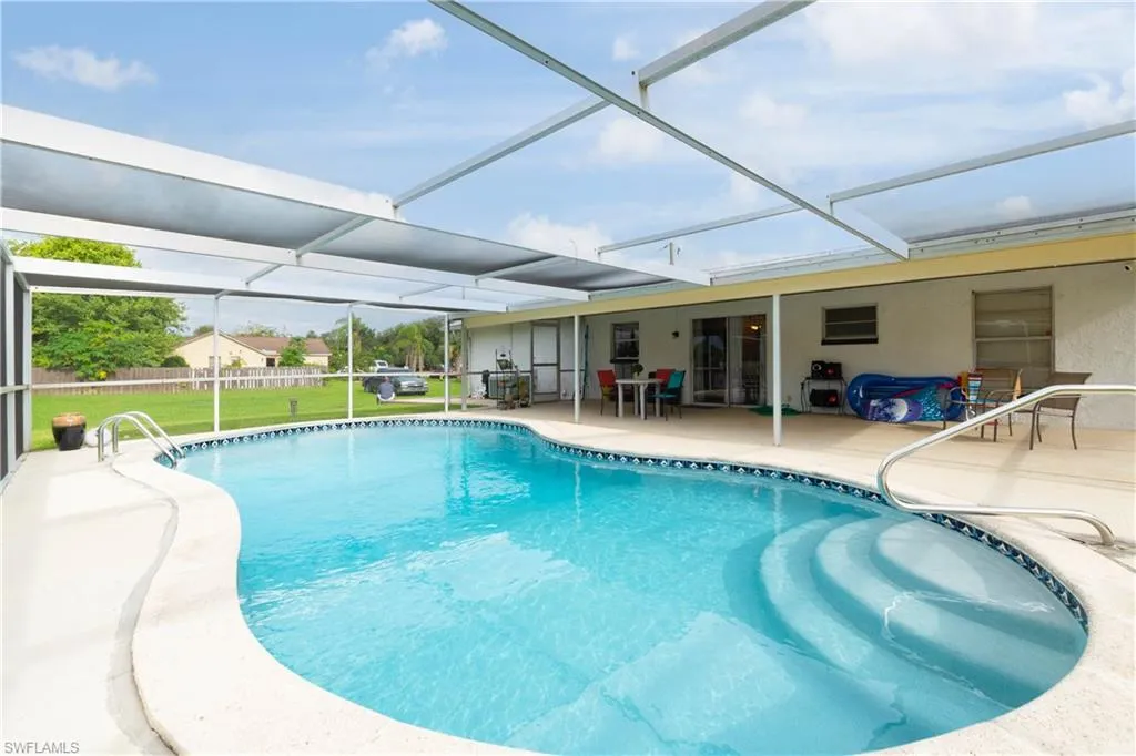 WELCOME TO YOUR OWN PRIVATE RETREAT IN THE HEART OF FORT MYERS. Nestled on Montego Drive, this 3-bedroom, 2-bath single-family home blends comfort and convenience with a sparkling screened pool and lake frontage perfect for relaxing evenings. Imagine gathering with friends on the spacious pool patio, with a yard that offers room for pets or play. Inside, cool tile flooring flows throughout, keeping the home bright and inviting. A generous laundry room adds practicality, while the location makes life effortless—just minutes to I-75 for quick commutes, with downtown Fort Myers, Buckingham, and Lehigh Acres all within easy reach. Here, you’ll experience the perfect balance of peaceful living and city access. Schedule your showing today before this rare lakefront pool home is gone!