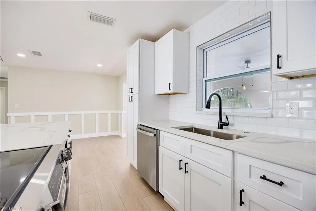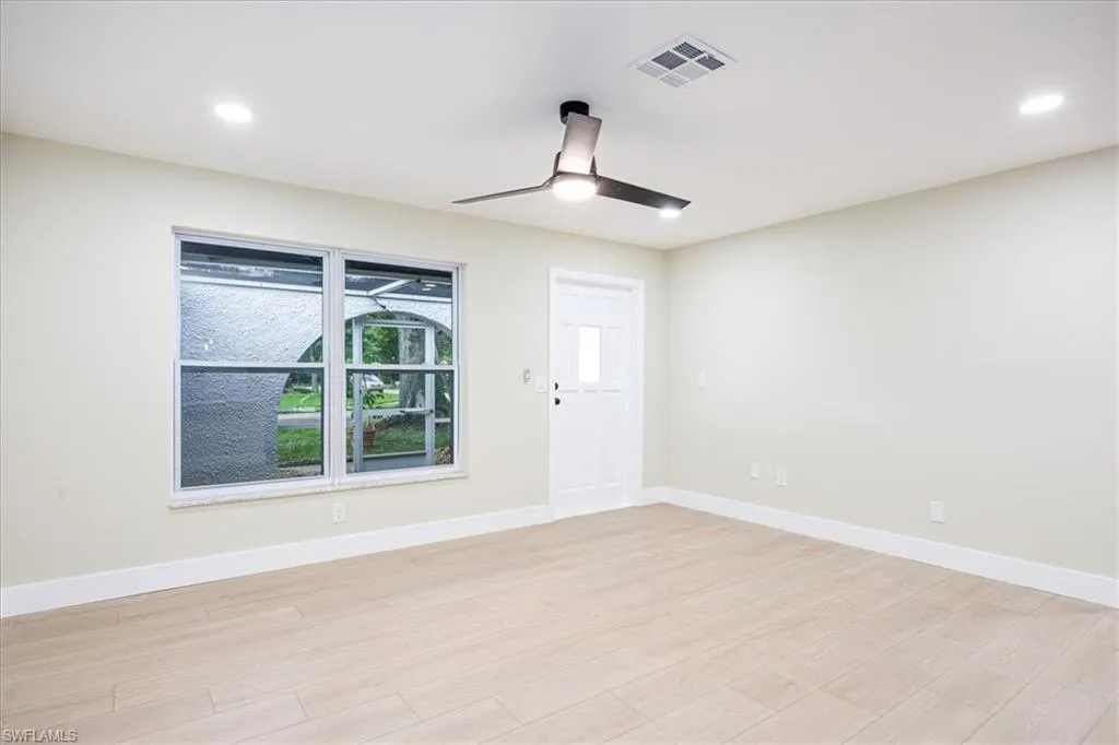 Welcome to this beautifully updated 3 bedroom, 2 bathroom single-family home, offering the perfect blend of modern style and comfort. Step inside to an open floor plan with fresh interior and exterior paint, new lighting and fans throughout, and a stunning kitchen featuring quartz countertops, an island, and brand-new stainless steel appliances. Both bathrooms have been tastefully remodeled with new tile for a clean, modern look. Outside, enjoy your own private retreat with a spacious screened-in patio overlooking the underground pool, complete with new pavers and a fully fenced backyard for added privacy. Major updates include a brand-new roof, newer 2023 A/C, and newer water heater for peace of mind. Ideally located near shopping, dining, and just minutes to local beaches, Downtown Fort Myers, and only 7 minutes to Downtown Cape Coral. With no HOA and no rental restrictions, this property is a fantastic primary home, vacation retreat, or investment opportunity.