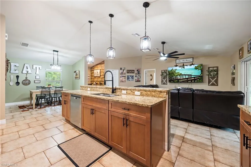 Welcome to your dream retreat in Alva! This beautifully maintained 2019 concrete block home offers 4 bedrooms, 2 bathrooms, and 1,669 sq. ft. of thoughtfully designed living space, all nestled on a generous 1-acre lot. Inside, you’ll love the open-concept layout, centered around a spacious kitchen island, perfect for entertaining or enjoying nightly family meals. Farmhouse-style touches and custom trim carpentry in the guest bedrooms add warmth and character throughout. The primary suite features backyard views, his and hers closets, dual sinks, and a walk-in shower for a private retreat. Built with energy efficiency in mind, the home is equipped with impact windows and doors and finished with stylish window treatments to help keep your home cool and comfortable year-round. Step outside to a screened-in lanai, ideal for grilling or relaxing, and enjoy the fully fenced half-acre backyard with a detached carport perfect for storing your toys, tools, or outdoor gear. The additional 0.5-acre parcel provides endless potential for a future workshop, garage, or extra storage space, with added privacy and secondary access from Columbus Ave. Conveniently located just 8 minutes from The Alva School and Alva Boat Ramp, and only 15 minutes to Walmart and Publix, this home offers the perfect balance of country living and everyday convenience. Whether you’re looking for room to spread out, build your dream shop, or simply enjoy a peaceful lifestyle, this Alva gem has it all. Don’t miss this opportunity, schedule your private showing today!
