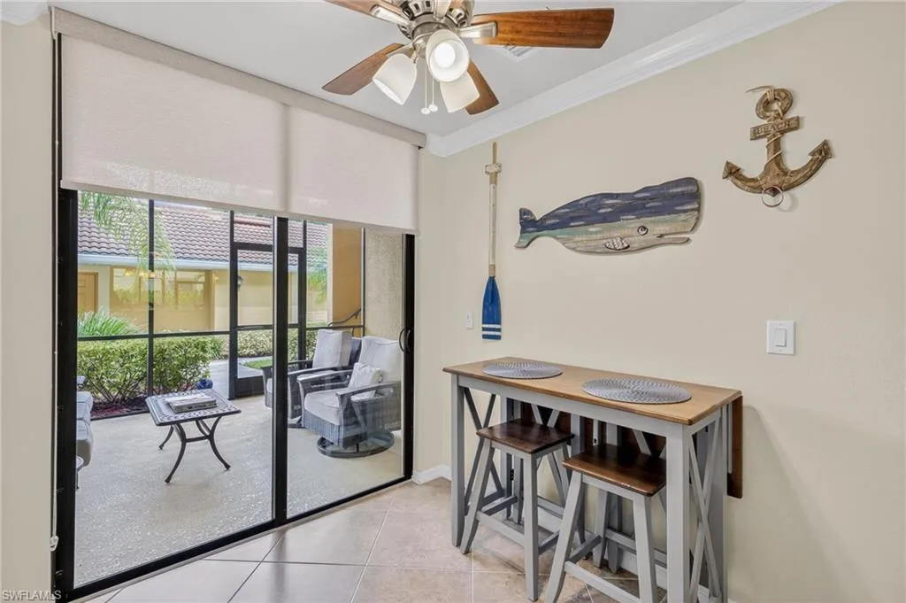 Beautifully maintained 2-bedroom + den, 2-bath condo with a Garage located in the sought after gated community of Palmetto Cove. Condo is being offered fully furnished, it’s the perfect move-in ready option for seasonal or year-round living. Step inside to find upgraded finishes throughout, including tile flooring in every room, granite countertops, 42-inch cabinets, stainless steel appliances, and crown molding. The open-concept kitchen includes a breakfast bar and pantry, ideal for casual dining and entertaining.
