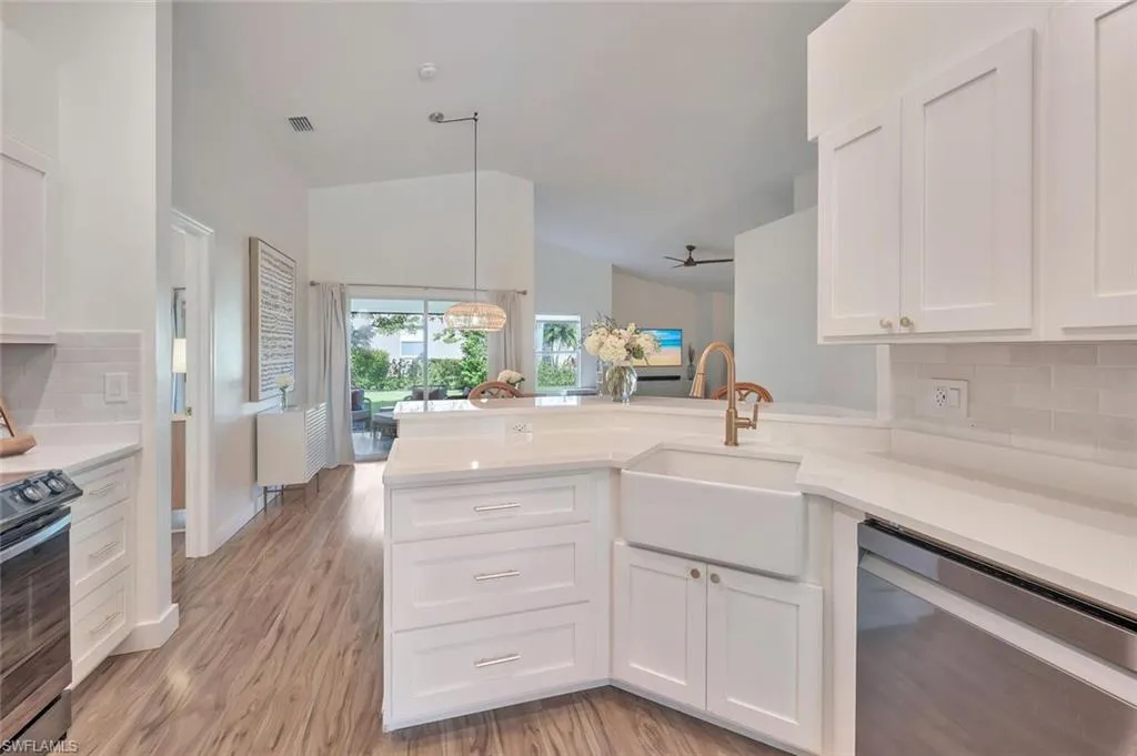 This stunning 3 -bedroom, 2- bath home has been completely remodeled and is move-in ready. Features include new roof, luxury vinyl flooring throughout, custom cabinetry, and an impact resistant hurricane front door. The garage has been upgraded with a mini-split system, transforming it into a versatile space perfect for an office and workout room. A Top-grade insulated garage door with an integrated camera and video recording system can be conveniently operated from your mobile device. Situated on a gorgeous corner lot with immaculate landscaping, this home is as beautiful outside as it is inside. Community amenities include lap pool, pickleball, tennis courts, basketball, volleyball, exercise room and much more… Don’t miss this dream home!!!!