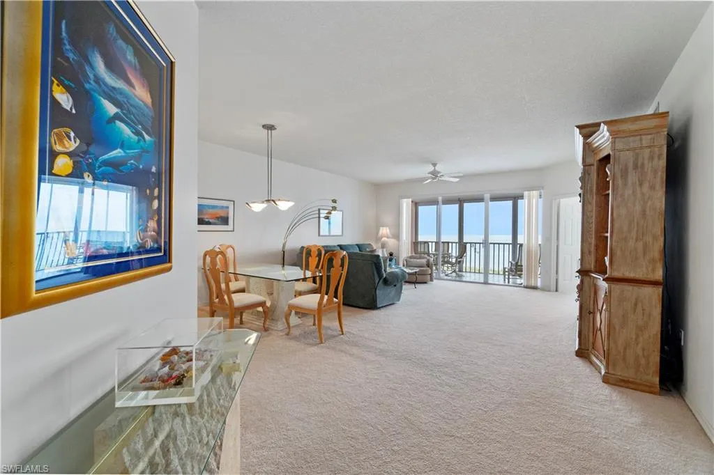 SKIP THE WAITLIST! THE CLUB AT BAREFOOT BEACH MEMBERSHIP AVAILABLE WITH THIS CONDO, SPECIFICALLY! A RARE & UNIQUE OPPORTUNITY! DIRECT BEACHFRONT CONDO with unobstructed Gulf views offered in coveted Barefoot Beach Club! Enjoy panoramic, front-row views of the Gulf from this beautifully maintained residence in North Naples’ premier coastal community. This spacious 2-bedroom, 2-bathroom condo offers 1,604 sq ft under air, an open floor plan, and electric hurricane shutters. The light and airy kitchen features light cabinetry, white countertops, a breakfast bar, and an eat-in area. The primary suite offers private lanai access and a spacious en-suite bath with dual vanities, soaking tub, and a walk-in closet. Step onto the expansive screened lanai and take in stunning sunsets, spot dolphins and manatees, and watch boats glide by—right from your private retreat. This unit is perfectly comfortable as-is OR the ideal canvas to update to your personal taste. Nearby to the BRAND-NEW CLUBHOUSE with state-of-the-art fitness center & resort-style pool. Barefoot Beach residents enjoy 3 miles of beach, 2 pools/spas, manned/gated entry & on-site mgmt. OPTIONAL “Club at Barefoot” offers tennis, 2 restaurants & beachside food/bev/chair service. Excellent Collier County location minutes to Mercato, Waterside & easy access to RSW Airport.