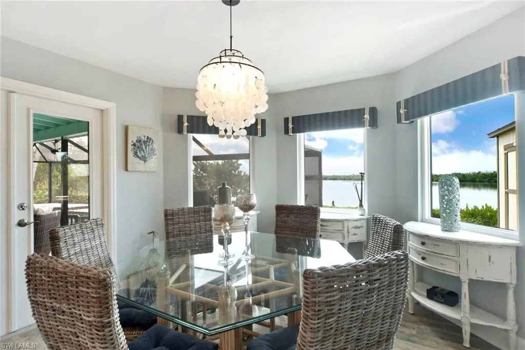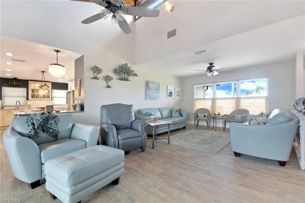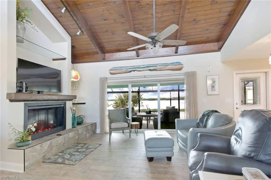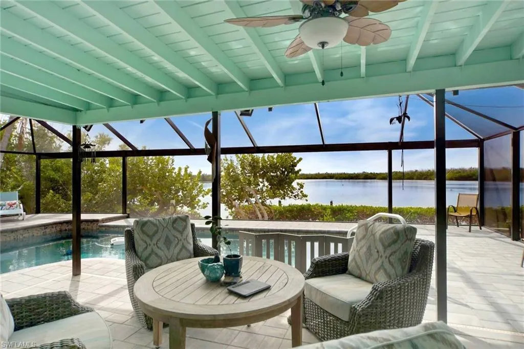 Must see this TURNKEY, newly furnished, tranquil bay waterfront property with immediate access to the intercoastal and abundance of wildlife. This beautiful home has captivating views of the secluded bay and Cape Coral and is located on desirable 8th Avenue in Saint James City. Everything you see when touring is included! New household furnishings include Tommy Bahama and other quality coastal lines from Baer’s Furniture in FM. Standing seam metal roof, driveway/walkway pavers, pool renovation, high impact slider doors and windows were completed in 2018. Complete interior remodel was done in 2023, due to Hurricane Ian. No damage from the 2024 hurricane season. The open concept, vaulted wood ceiling, electric fireplace feature wall and 12’ glass slider doors, add to the beauty of this home. The large open gourmet kitchen/dining room is complete with high-end appliances, perfect for meal prep and entertaining. The two-car, drywall finished garage has ample room for storage and workspace. Photos shown in listing are of the pre-Ian 2-lift covered boat dock. The dock was not rebuilt, giving buyers the ability to build to their own needs and specifications. New riprap sea wall, aluminum fence, gates and landscaping completed in 2024. You will be scanning the bay for dolphins, manatees, an array of birdlife and leaping fish while preparing your meals, entertaining guests or just relaxing. Views from everywhere! So much more…you must see to fully appreciate.