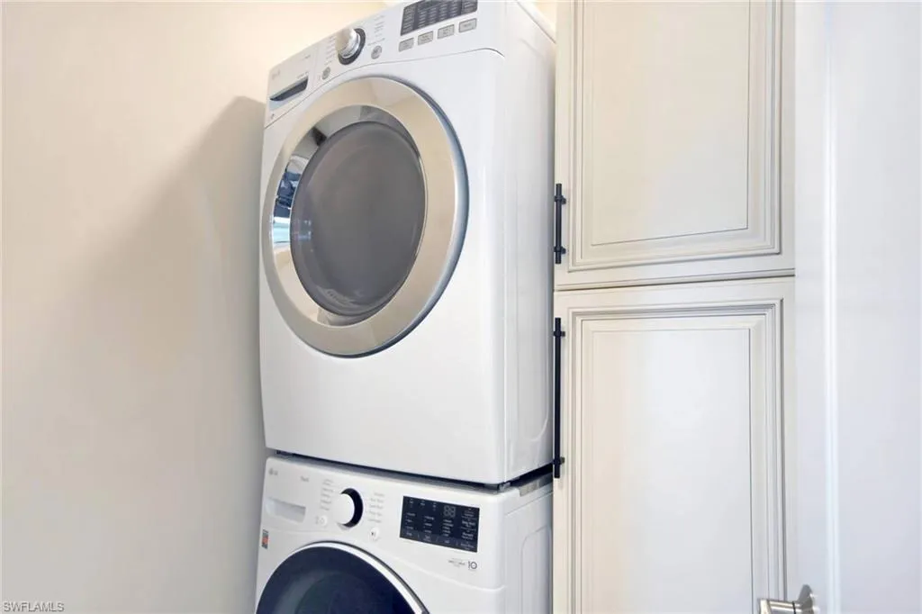 * Laundry closet w/ LG stackable washer/dryer &laundry cupboard