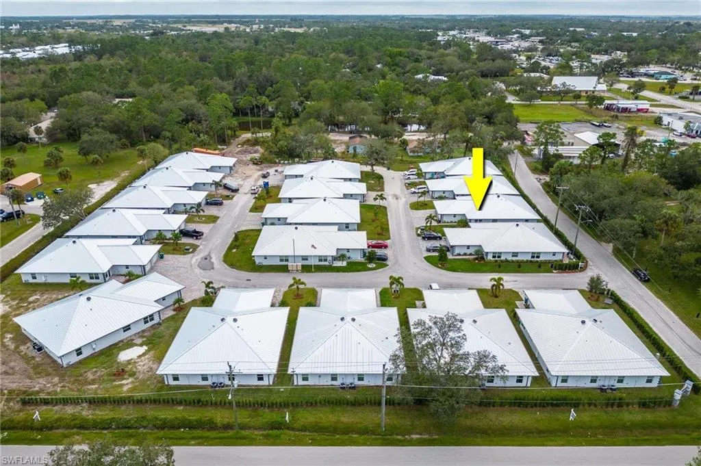MOVE-IN READY! EXCELLENT INVESTMENT, CENTRAL LOCATION, FOR YOURSELF A PARENT OR EMPLOYEE. City Village Villas are some of the nicest newly built homes in LaBelle! This is a 2 bedroom, 2 bath, and it’s ready NOW! The concrete block structure with firewall & seamless galvalume metal roof is built tough. This energy efficient villa has LED lighting indoors, Low-Voltage lighting outdoors, a solar roof exhaust fan, hurricane impact windows and door, fiberoptic wiring & is pre-wired for televisions. It features a spacious open floor plan with cathedral ceiling, tile throughout all living room spaces, and island kitchen with granite counters throughout the kitchen & bathrooms. This 2/2, comes with stack washer & dryer, stainless steel appliances, natural gas stove & instant hot water system. Your breath will be taken away by this spectacular kitchen with bar seating, and pendant lighting. This lot has a very nice, side yard. City Village allows you to relax and enjoy life without the worry of outside lawncare or building maintenance—enjoy a “no hassle” lifestyle. City Village Community is a small community of 19 total buildings for a total of 36 villas and very low HOA fees.