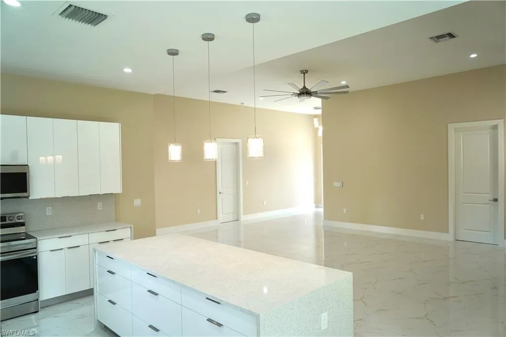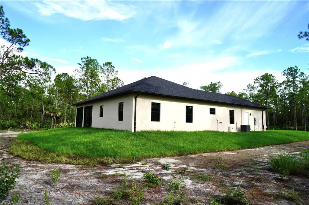 Brand new 3 bed + den, 2 bath estate home on 2.73 acres in desirable Golden Gate Estates! Featuring an open-concept floor plan, soaring ceilings, impact windows/doors, and a gourmet kitchen with quartz countertops & stainless steel appliances. Enjoy luxury vinyl flooring, spa-inspired bathrooms, and a spacious covered lanai perfect for entertaining. Plenty of room for a pool, guest house, or workshop. No HOA fees, no restrictions—bring your toys and pets!