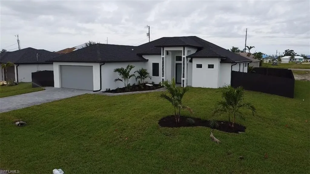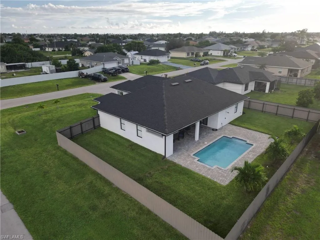This gorgeous pool home offers 4 bedrooms, 3 bathrooms, and a 2-car garage, and is truly move-in ready. Meticulously maintained and built with remarkable attention to detail, it features premium upgrades throughout that make it stand out in today’s market. Located on a desirable corner lot in NW Cape Coral, the property combines style, comfort, and functionality. The spacious open floor plan is filled with natural light, and the modern finishes create a perfect balance of elegance and livability. For your comfort, the master bedroom is equipped with motorized blackout shades combined with zebra blinds. The living area also features fully motorized zebra blinds, while the additional bedrooms are fitted with stylish manual zebra blinds. With its inviting outdoor living space and sparkling pool, this home offers the perfect setting for entertaining or simply relaxing in your own private retreat. Homes like this are rarely available—combining quality, location, and design in a way that is almost one-of-a-kind.